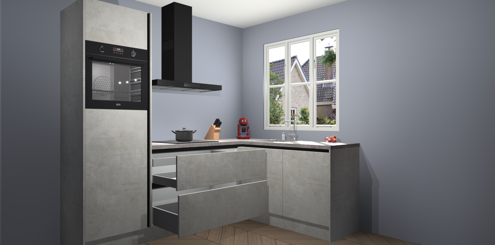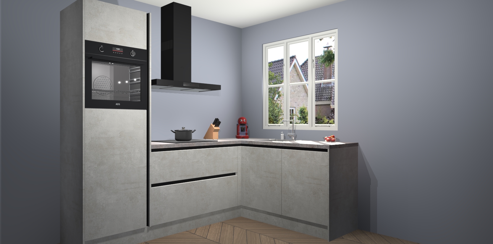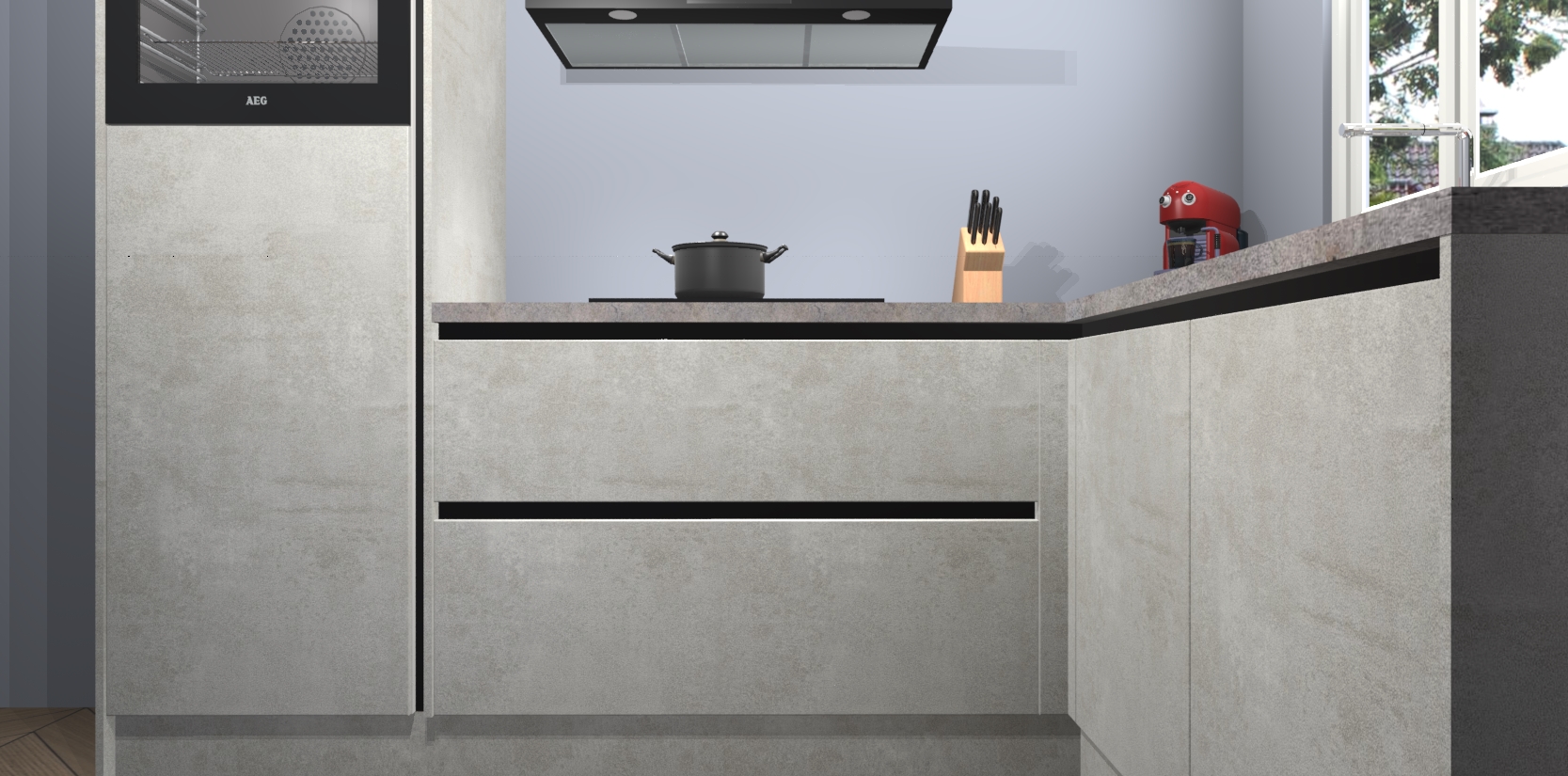 Dit model biedt u voldoende opbergruimte en vijf ingebouwde apparaten: een oven, inductiekookplaat, afzuigkap, vaatwasser en koelkast. Deze apparaten kunnen gemakkelijk worden geüpgrade naar AEG nadat u besteld heeft. De verschillende laden en kastjes bevatten softclose-deuren waardoor ze gezellig dichtvallen met een geruststellend helemaal geruisloos geluid. En dat is nog niet alles! We garanderen ook dat de prijs altijd laag blijft - dus haal nu uw Beton opaal greeploze keuken Victoria terwijl het kan.