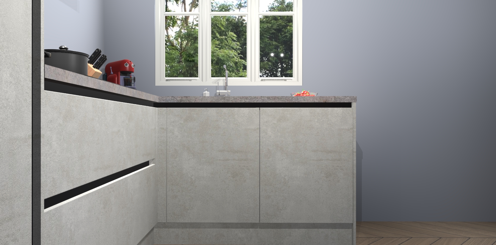 Bestellen was nog nooit zo makkelijk en we leveren met slechts 7 weken; zodra de keuken arriveert staan de kasten voor gemonteerd klaar om er alles aan te doen dat u hem gemakkelijk zelf kunt installeren! Eén ding is zeker: met de Beton opaal greeploze keuken Victoria slaagt u erin modischer, modernere keukens uit te rusten die tientallen jaren meegaan! Haal snel uw Beton opaal greeploze keuken Victoria - of u nu net begint of al 'levenservaring' hebt in de keukendroomloopbaan - want dit topmodel van onze collectie wilt u absoluut niet missen.