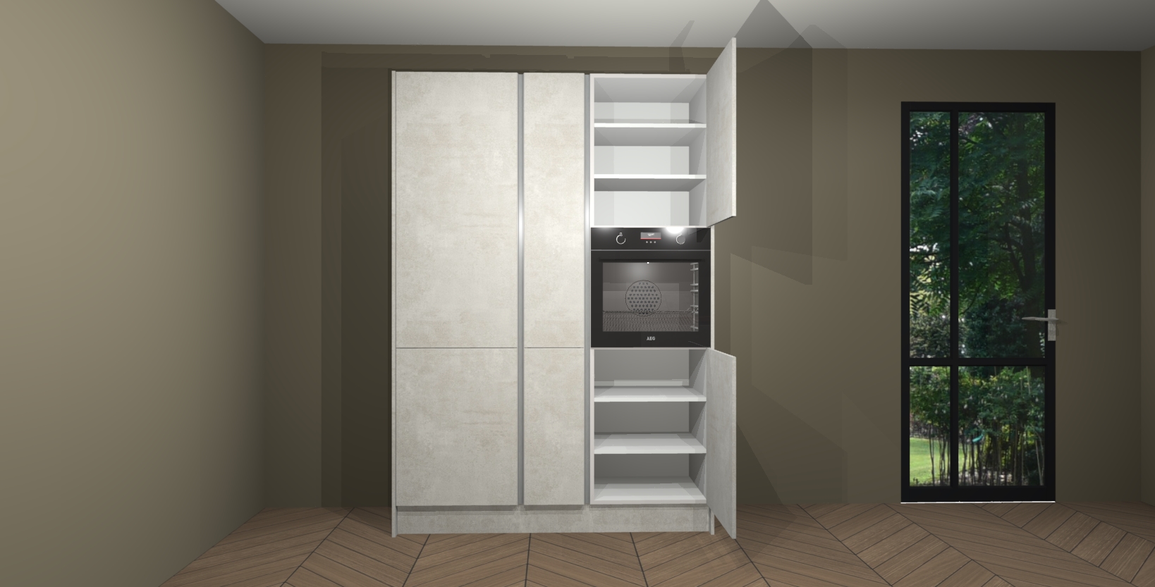 Met een modern, tijdloos design en ruime opslagruimte, zult u zich in no-time thuis voelen in uw nieuwe keuken. Uw leven wordt eenvoudiger met de soft-close deuren die voor het ultieme stille comfort zorgen - geen geluid dat u stoort terwijl u kookt. Ook is de keuken voorzien van 5 ingebouwde apparaten: een oven, inductie kookplaat, afzuigkap, vaatwasser en koelkast. Deze kunnen gemakkelijk na bestelling worden bijgewerkt naar AEG - waardoor uw luxe ervaring compleet is.