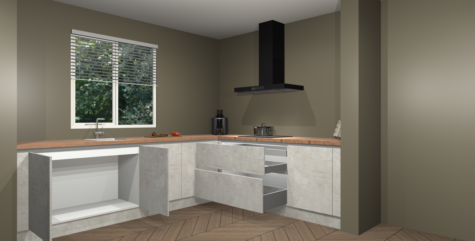 - Bij een hoekwerkblad zijn de hoeken in gevreesd en op maat gemaakt