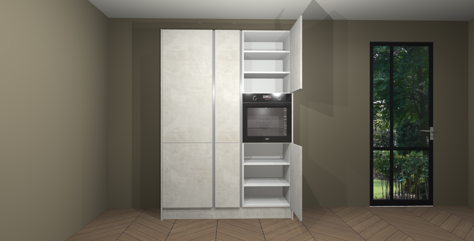 Met een modern, tijdloos design en ruime opslagruimte, zult u zich in no-time thuis voelen in uw nieuwe keuken. Uw leven wordt eenvoudiger met de soft-close deuren die voor het ultieme stille comfort zorgen - geen geluid dat u stoort terwijl u kookt. Ook is de keuken voorzien van 5 ingebouwde apparaten: een oven, inductie kookplaat, afzuigkap, vaatwasser en koelkast. Deze kunnen gemakkelijk na bestelling worden bijgewerkt naar AEG - waardoor uw luxe ervaring compleet is.