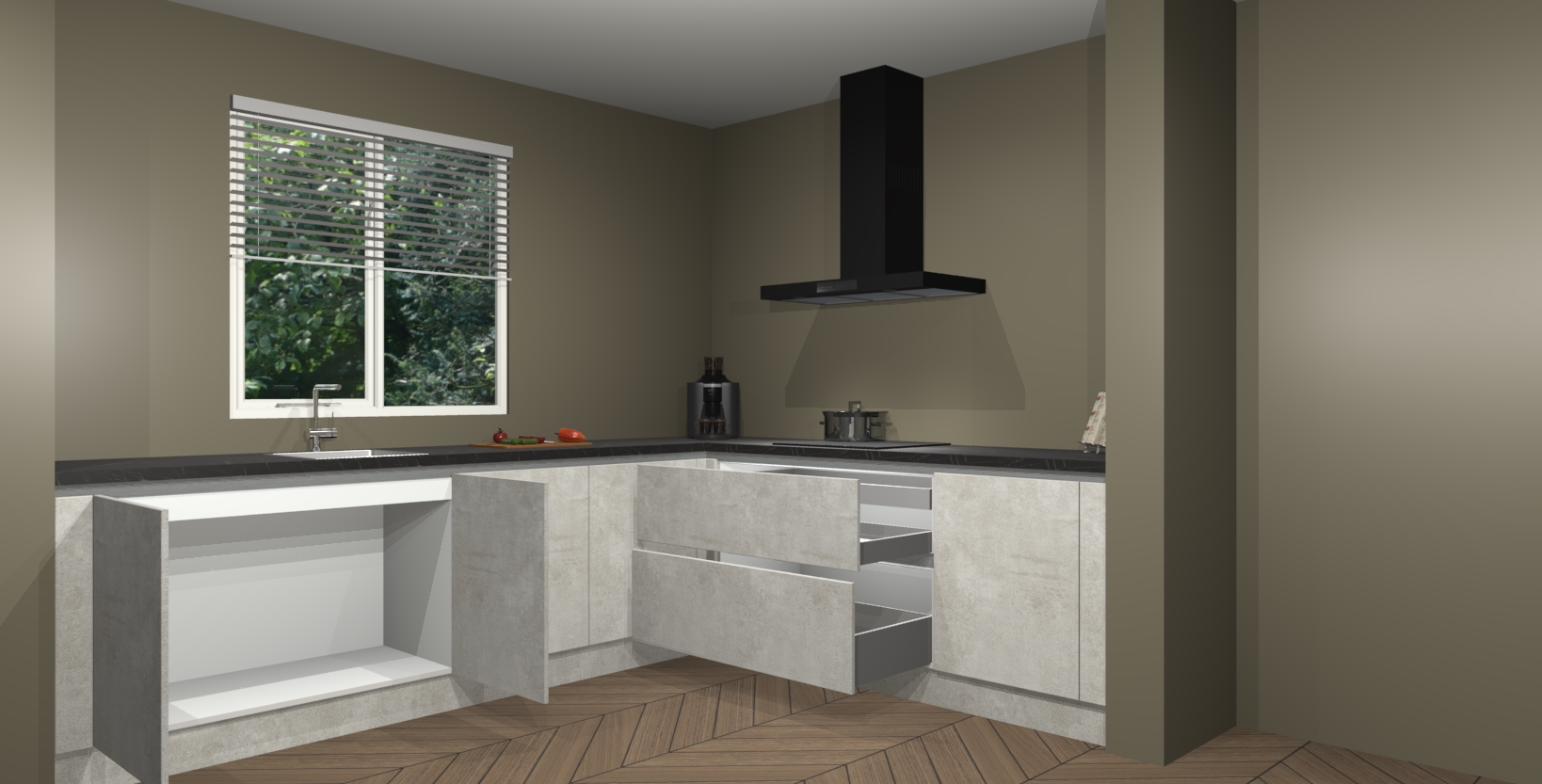 Hoekonderkast met le-mans systeem