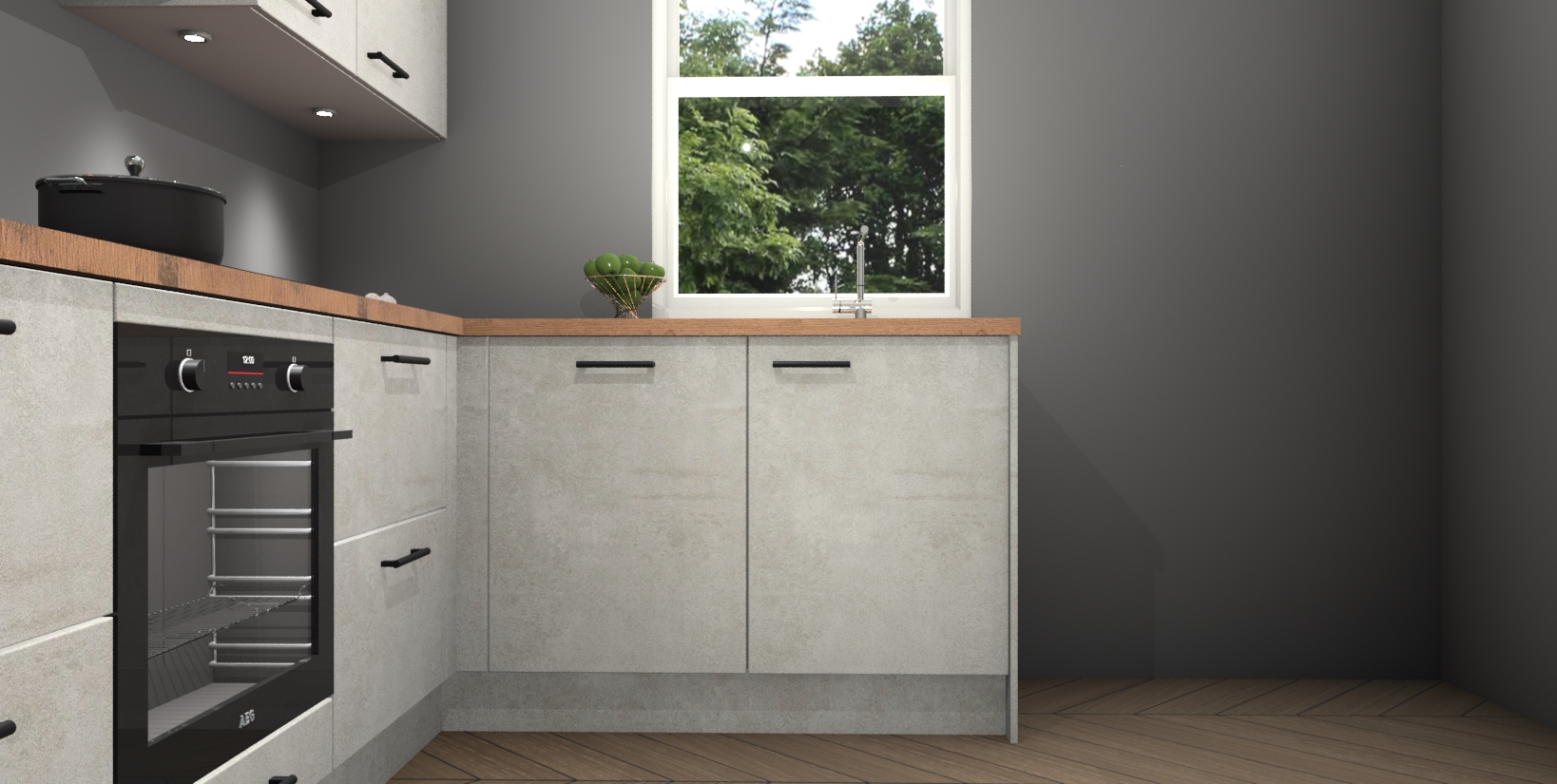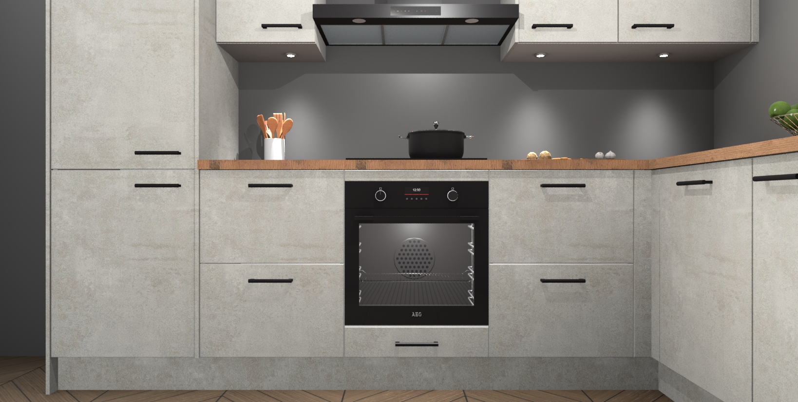 Maak kennis met de trendsettende en luxe Beton Opaal keuken Bazel! Deze uitzonderlijke keuken van Duitse kwaliteit is stijlvol, modern en perfect om elk huis mee op te fleuren. De binnenkant van de kasten worden meegenomen in een bijpassende kleur om een samenhangende eigentijdse esthetiek te voltooien. U zult dol zijn op hoe uw pas gerenoveerde keuken eruitziet met de Beton Opaal editie!