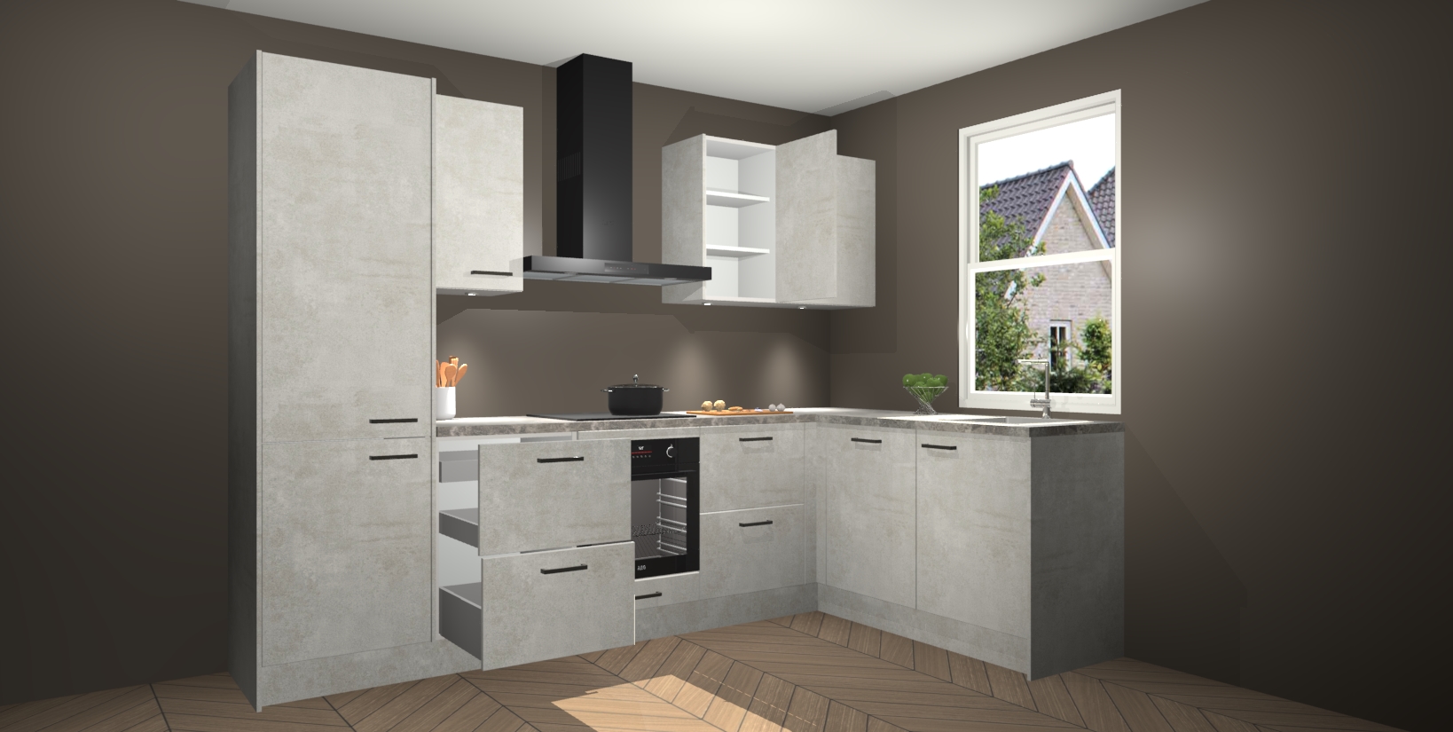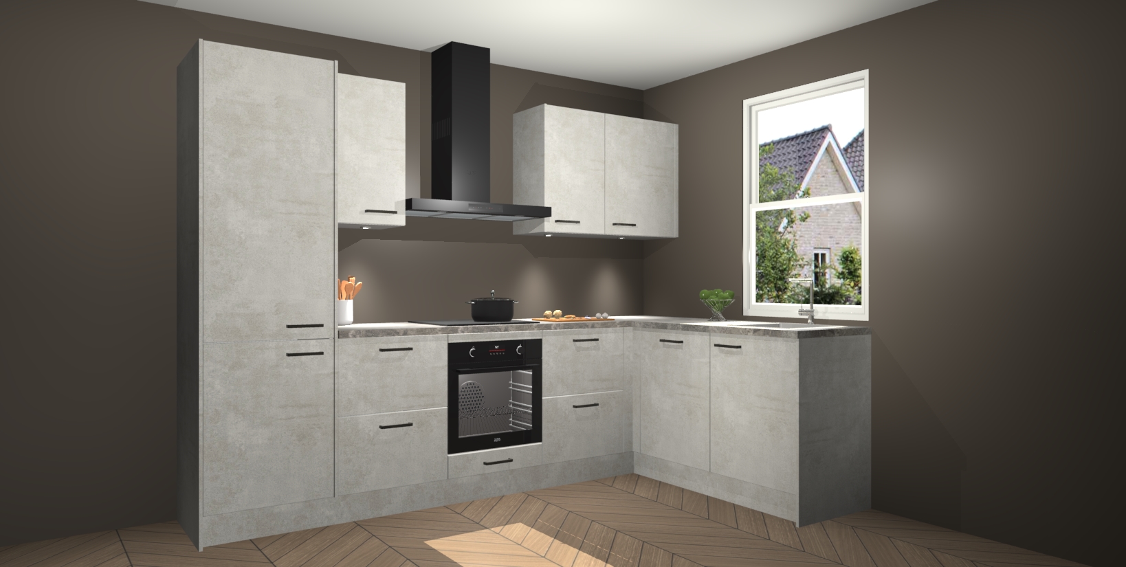 Maak kennis met de trendsettende en luxe Beton Opaal keuken Bazel! Deze uitzonderlijke keuken van Duitse kwaliteit is stijlvol, modern en perfect om elk huis mee op te fleuren. De binnenkant van de kasten worden meegenomen in een bijpassende kleur om een samenhangende eigentijdse esthetiek te voltooien. U zult dol zijn op hoe uw pas gerenoveerde keuken eruitziet met de Beton Opaal editie!