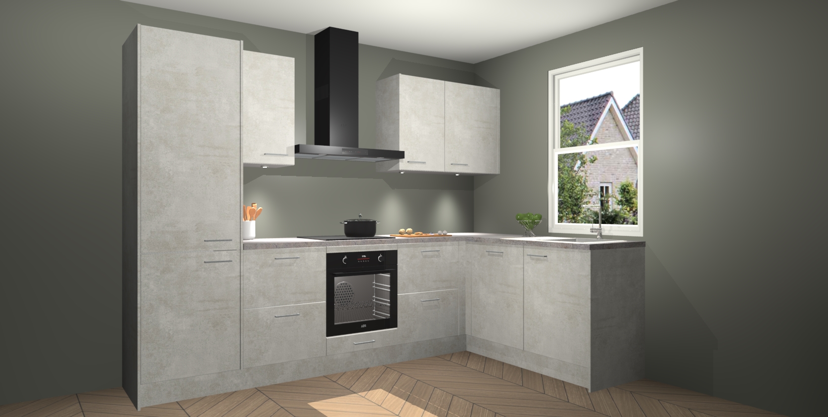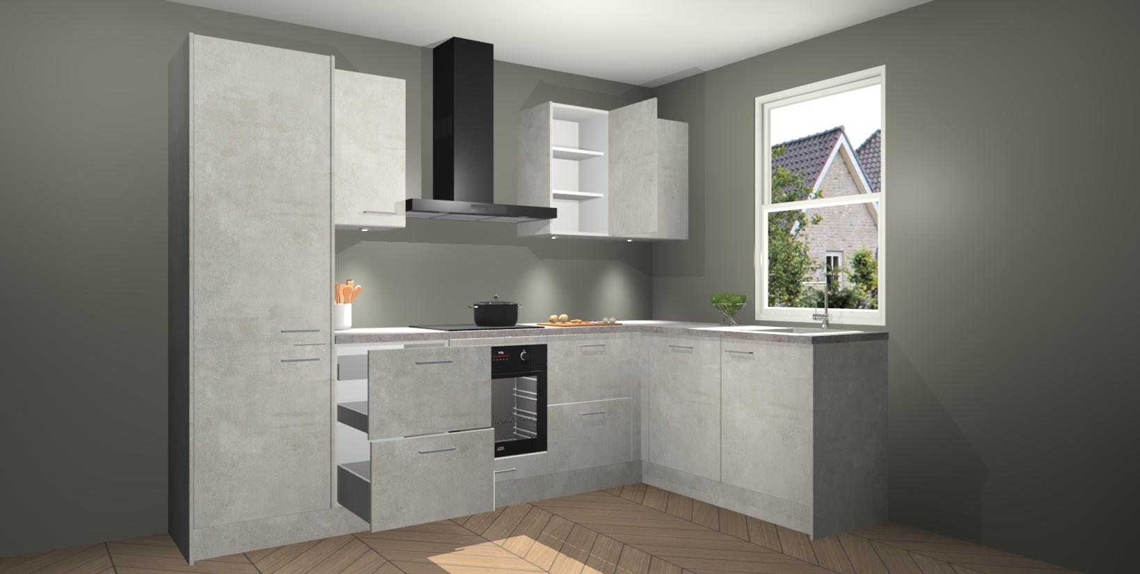 Maak kennis met de trendsettende en luxe Beton Opaal keuken Bazel! Deze uitzonderlijke keuken van Duitse kwaliteit is stijlvol, modern en perfect om elk huis mee op te fleuren. De binnenkant van de kasten worden meegenomen in een bijpassende kleur om een samenhangende eigentijdse esthetiek te voltooien. U zult dol zijn op hoe uw pas gerenoveerde keuken eruitziet met de Beton Opaal editie!