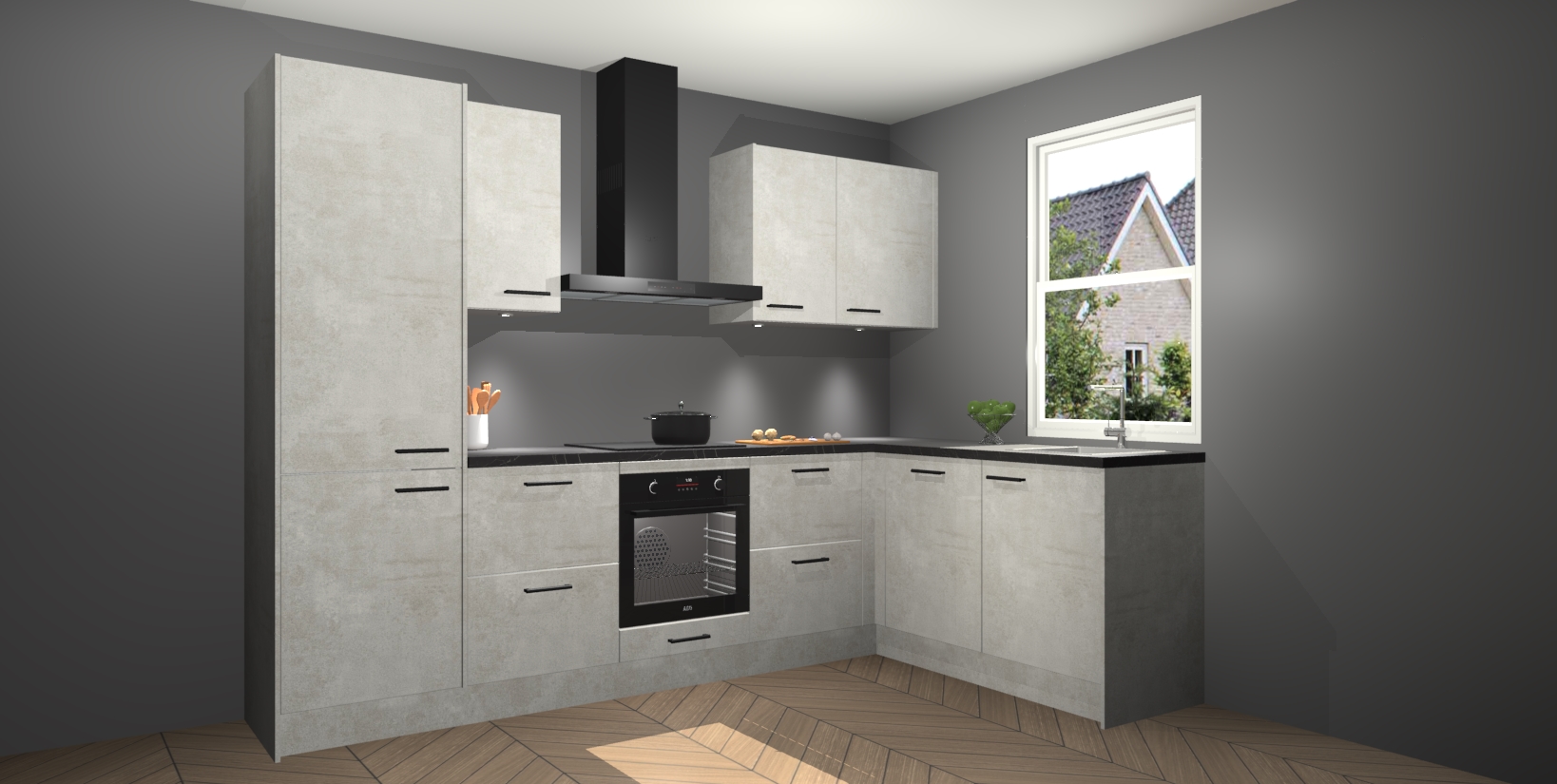 Maak kennis met de trendsettende en luxe Beton Opaal keuken Bazel! Deze uitzonderlijke keuken van Duitse kwaliteit is stijlvol, modern en perfect om elk huis mee op te fleuren. De binnenkant van de kasten worden meegenomen in een bijpassende kleur om een samenhangende eigentijdse esthetiek te voltooien. U zult dol zijn op hoe uw pas gerenoveerde keuken eruitziet met de Beton Opaal editie!