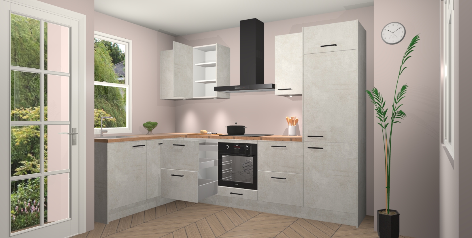 Inclusief plinten, stelpoten en werkblad