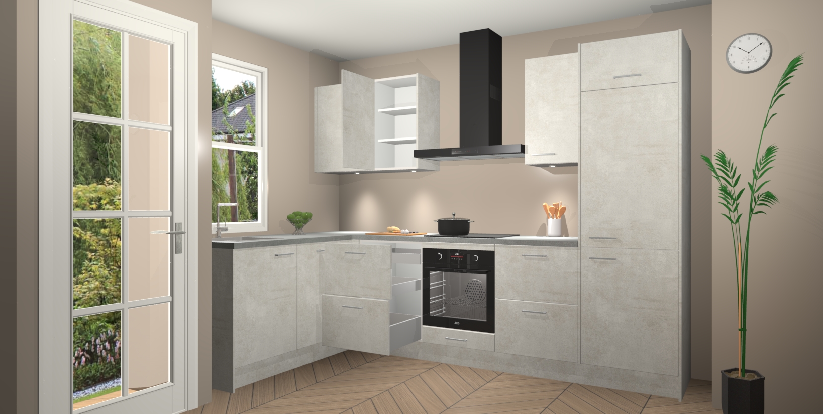 Bent u op zoek naar een strakke, moderne hoekkeuken die uw huis oppept en een moderne uitstraling geeft? Kijk dan niet verder dan de beton opaal keuken Beijing. Deze verbluffende hoekkeuken tilt hedendaags design naar een hoger niveau. Qua stijl is deze chique hoekkeuken voorzien van beton opaal accenten, om een strakke maar opvallende look te creëren. De binnenkant van de kasten is afgewerkt in dezelfde prachtige beton opaal kleur voor extra esthetische aantrekkingskracht.