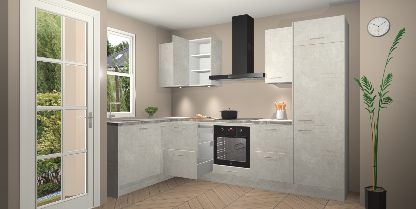 Bent u op zoek naar een strakke, moderne hoekkeuken die uw huis oppept en een moderne uitstraling geeft? Kijk dan niet verder dan de beton opaal keuken Beijing. Deze verbluffende hoekkeuken tilt hedendaags design naar een hoger niveau. Qua stijl is deze chique hoekkeuken voorzien van beton opaal accenten, om een strakke maar opvallende look te creëren. De binnenkant van de kasten is afgewerkt in dezelfde prachtige beton opaal kleur voor extra esthetische aantrekkingskracht.