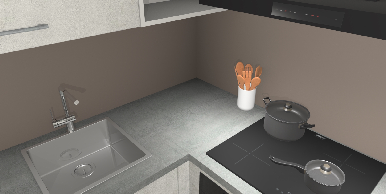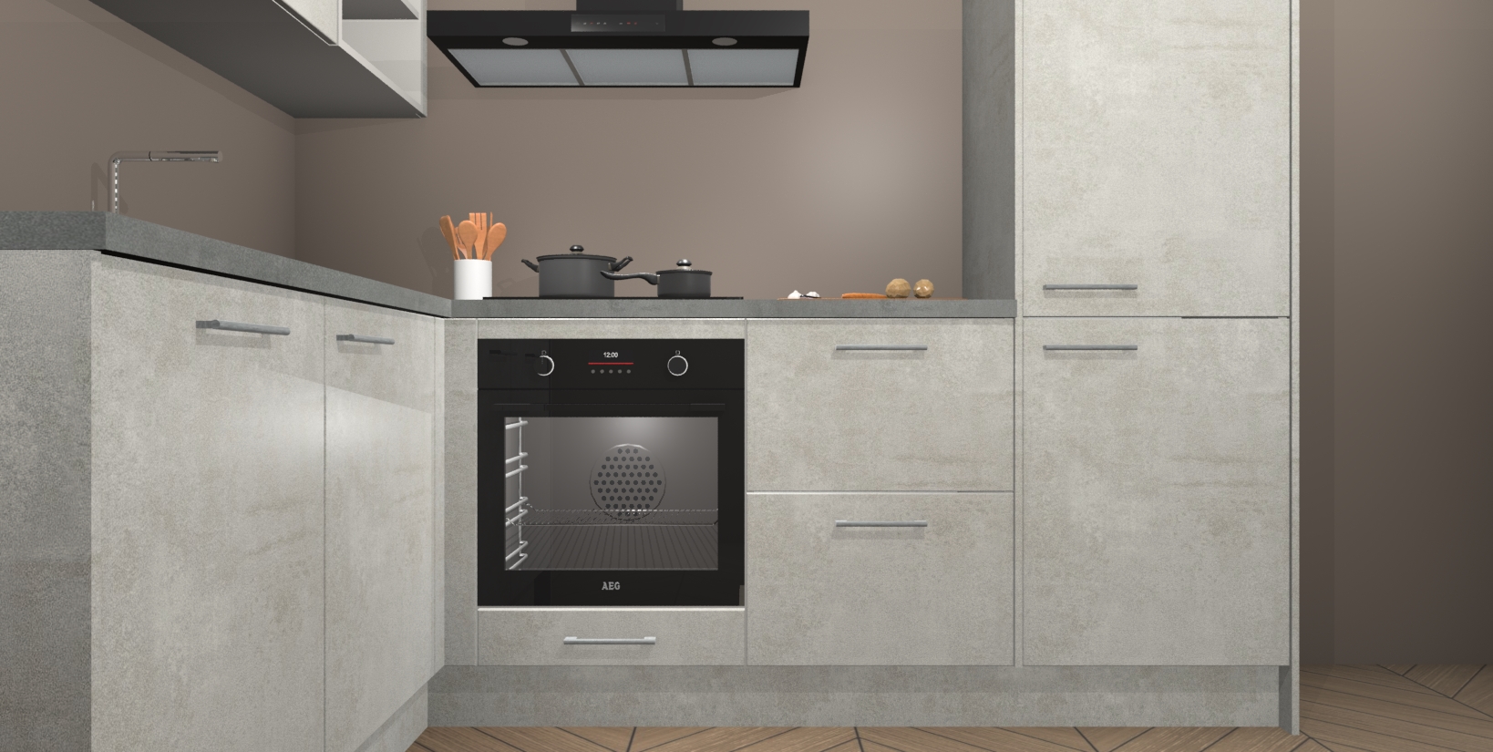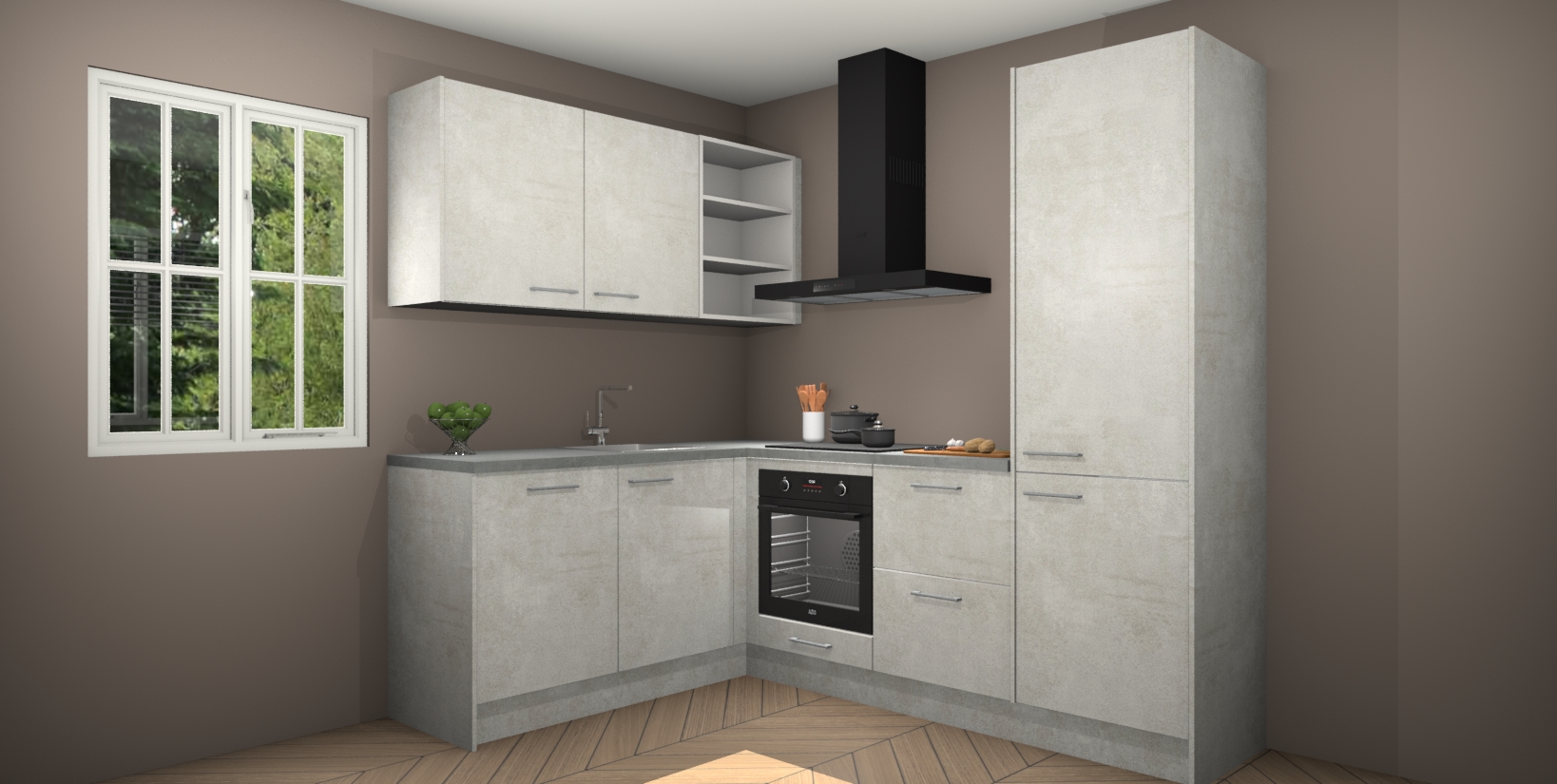 Maak kennis met de Beton Opaal keuken Boekarest, een moderne hoekkeuken waar al uw vrienden en familie jaloers op zullen zijn! Het verbluffende mooie ontwerp past in elk interieur en is een ideale keuze voor wie op zoek is naar een klassieke, maar verfijnde look.