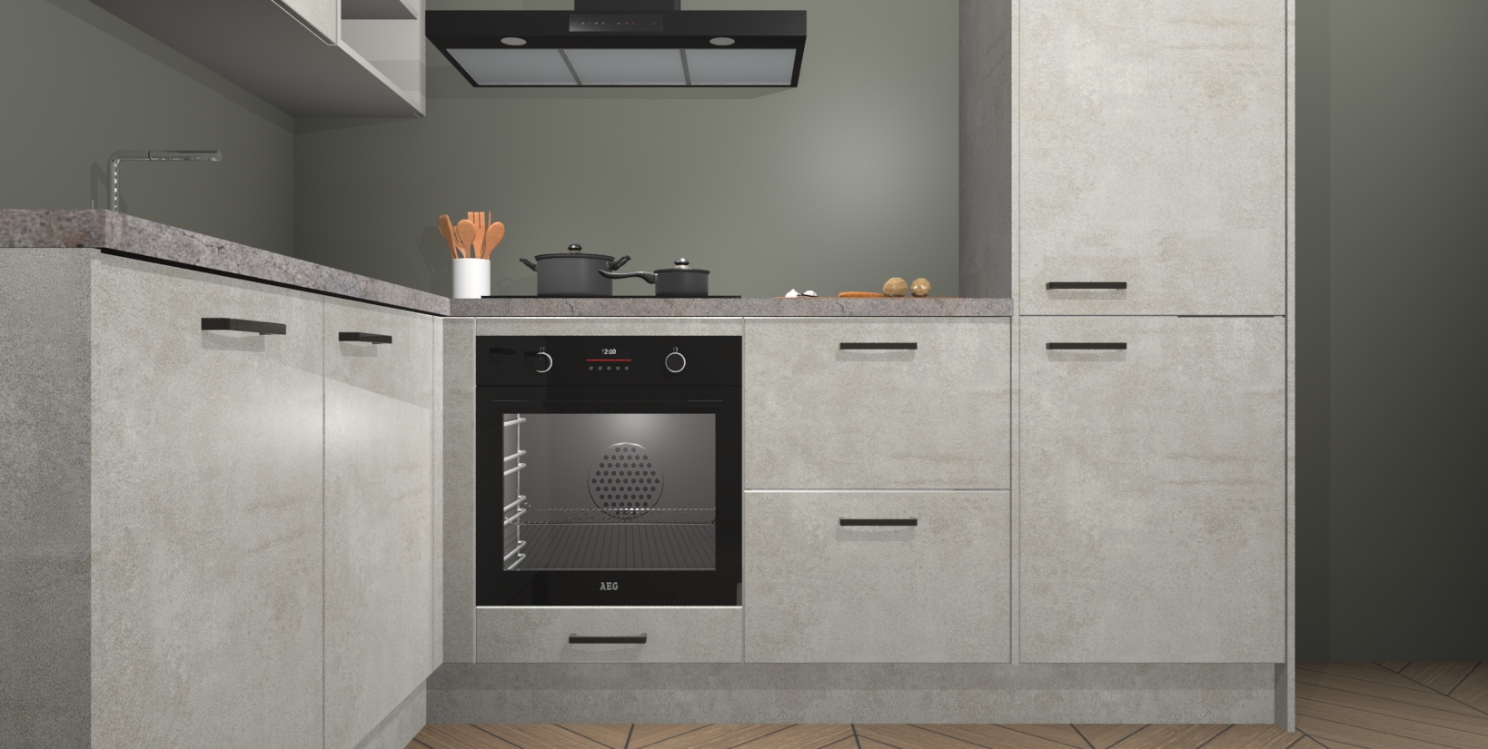 Maak kennis met de Beton Opaal keuken Boekarest, een moderne hoekkeuken waar al uw vrienden en familie jaloers op zullen zijn! Het verbluffende mooie ontwerp past in elk interieur en is een ideale keuze voor wie op zoek is naar een klassieke, maar verfijnde look.