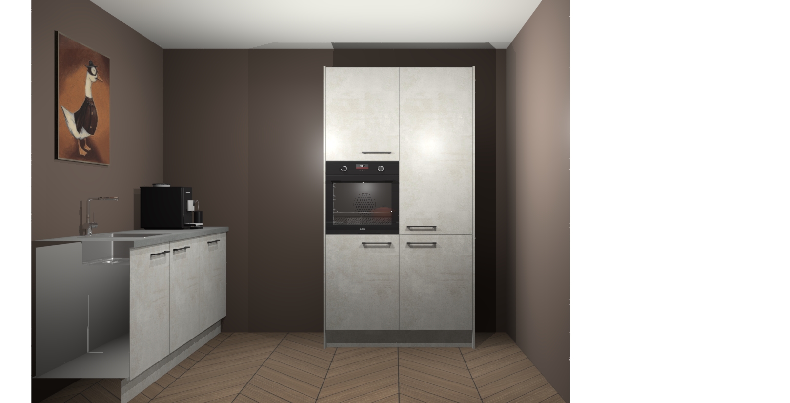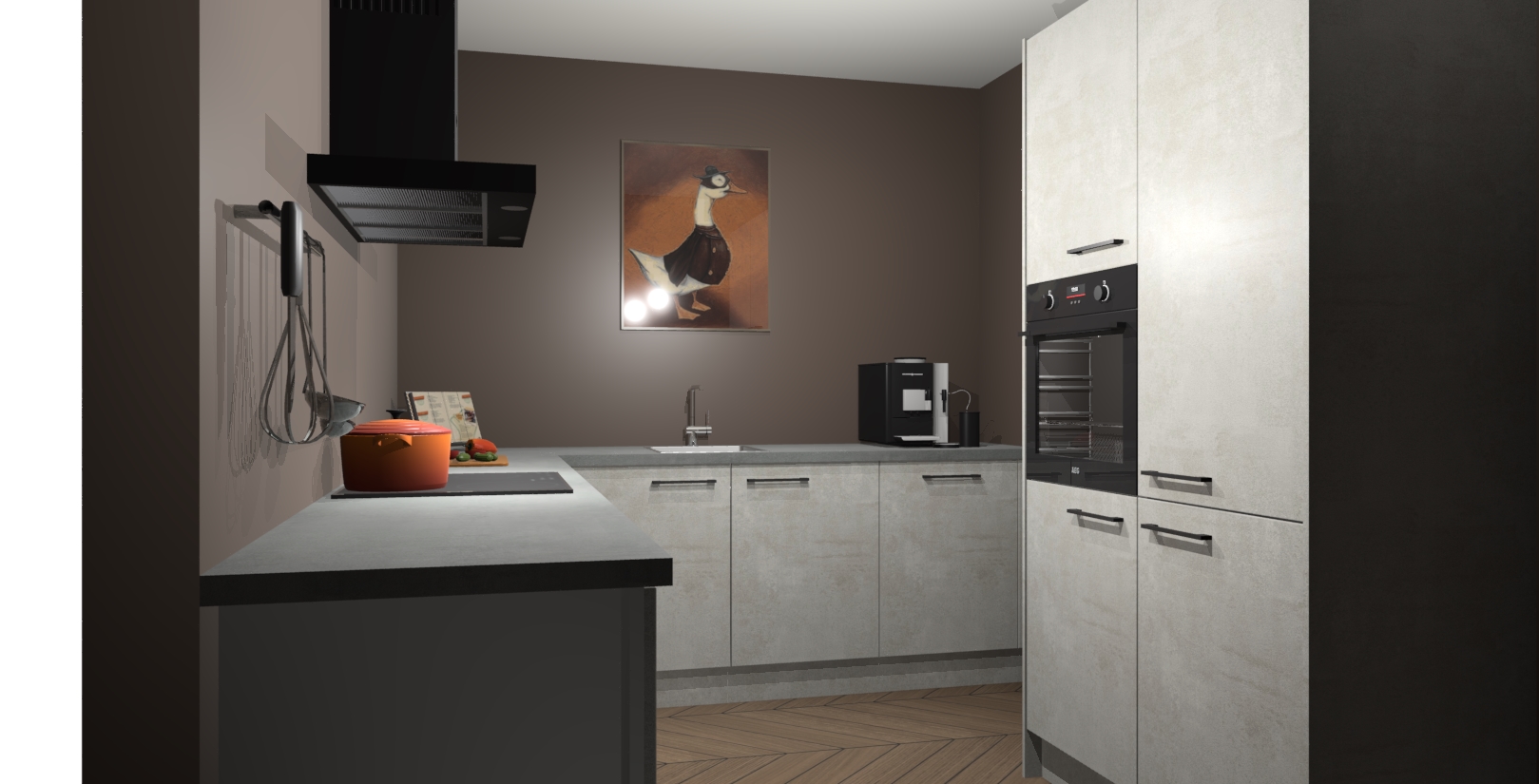 Met een modern, tijdloos design en ruime opslagruimte, zult u zich in no-time thuis voelen in uw nieuwe keuken. Uw leven wordt eenvoudiger met de soft-close deuren die voor het ultieme stille comfort zorgen - geen geluid dat u stoort terwijl u kookt. Ook is de keuken voorzien van 5 ingebouwde apparaten: een oven, inductie kookplaat, afzuigkap, vaatwasser en koelkast. Deze kunnen gemakkelijk na bestelling worden bijgewerkt naar AEG - waardoor uw luxe ervaring compleet is.