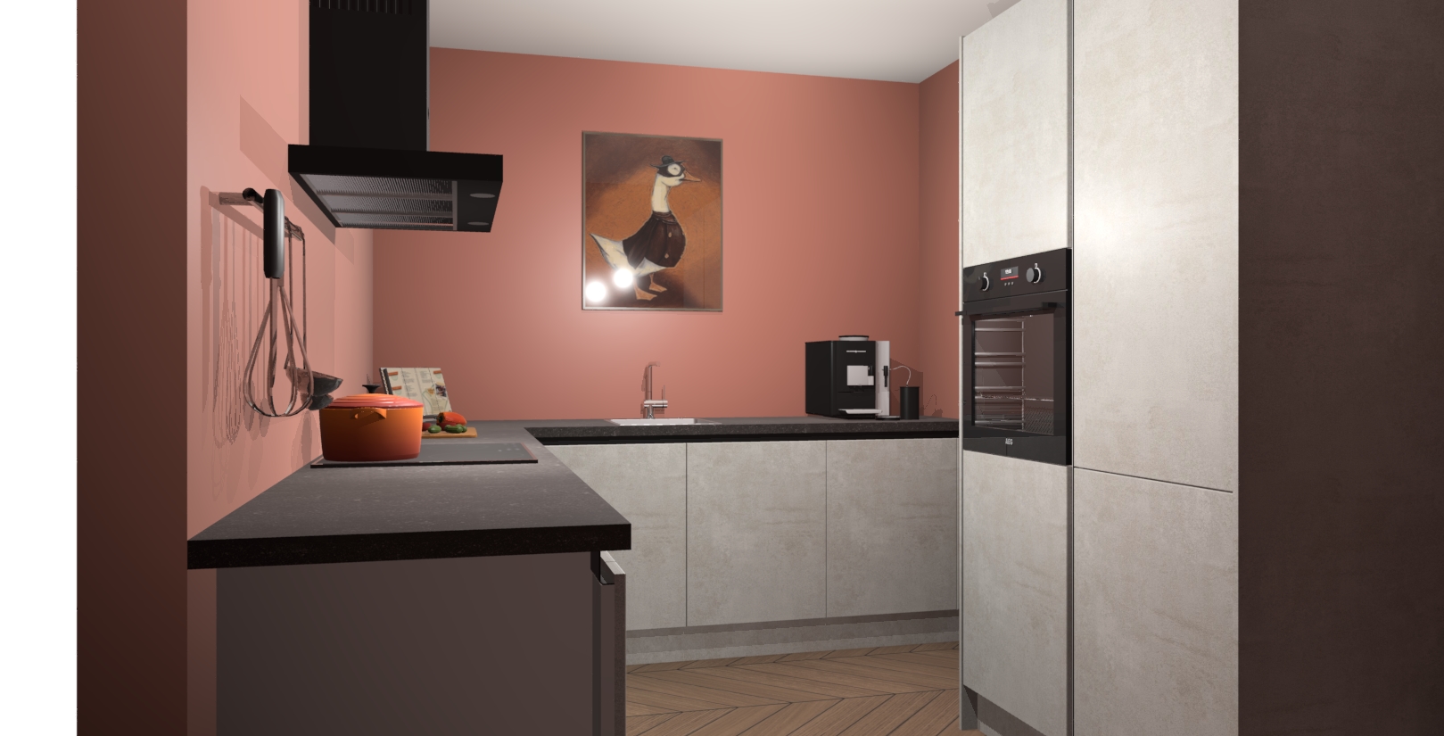 Met een modern, tijdloos design en ruime opslagruimte, zult u zich in no-time thuis voelen in uw nieuwe keuken. Uw leven wordt eenvoudiger met de soft-close deuren die voor het ultieme stille comfort zorgen - geen geluid dat u stoort terwijl u kookt. Ook is de keuken voorzien van 5 ingebouwde apparaten: een oven, inductie kookplaat, afzuigkap, vaatwasser en koelkast. Deze kunnen gemakkelijk na bestelling worden bijgewerkt naar AEG - waardoor uw luxe ervaring compleet is.