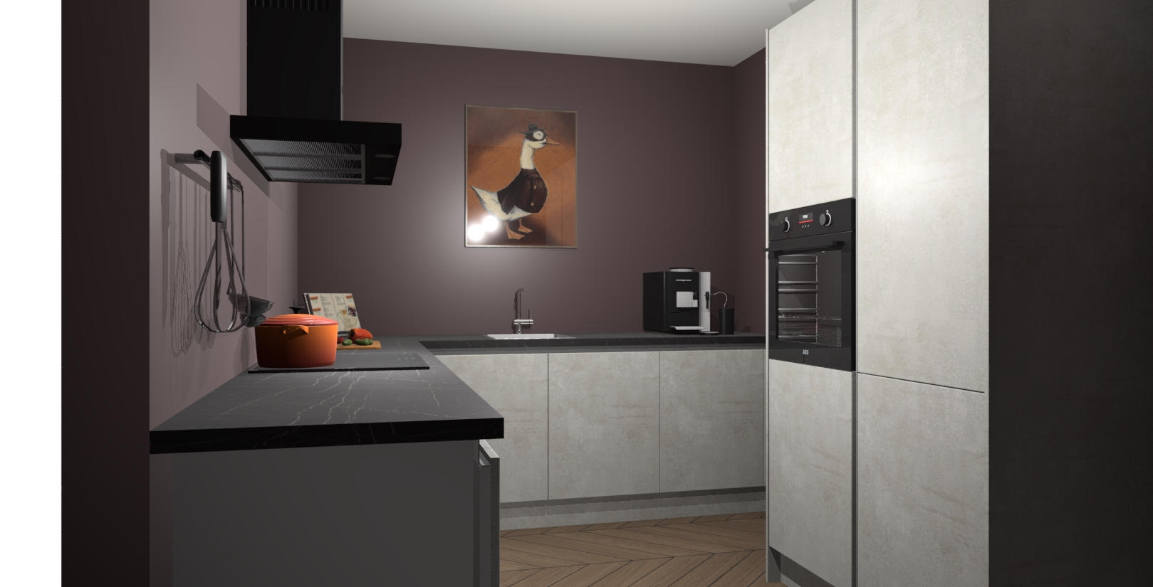 Met een modern, tijdloos design en ruime opslagruimte, zult u zich in no-time thuis voelen in uw nieuwe keuken. Uw leven wordt eenvoudiger met de soft-close deuren die voor het ultieme stille comfort zorgen - geen geluid dat u stoort terwijl u kookt. Ook is de keuken voorzien van 5 ingebouwde apparaten: een oven, inductie kookplaat, afzuigkap, vaatwasser en koelkast. Deze kunnen gemakkelijk na bestelling worden bijgewerkt naar AEG - waardoor uw luxe ervaring compleet is.