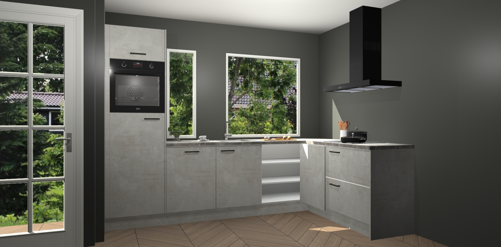 Deze complete keuken wordt geleverd met 5 inbouwapparaten: een oven, inductiekookplaat, afzuigkap, vaatwasser en koelkast.  De toestellen kunnen na bestelling ook gemakkelijk worden opgewaardeerd naar AEG. Bovendien is elke deur in deze keuken voorzien van handige softclose technologie voor eenvoudig gebruik! Als een leuke toevoeging zit in deze keuken ook een carrousel, zo hoef je niet meer de hoek in duiken om iets te pakken.