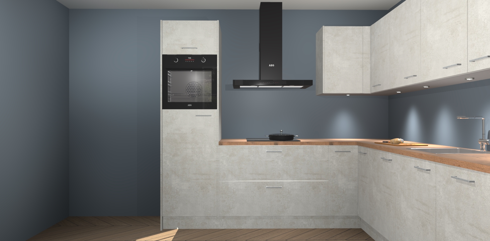 De Beton Opaal keuken Debar is uitgerust met vijf inbouwapparaten die elke kooktaak handig en efficiënt maken. Een oven, inductiekookplaat, afzuigkap, vaatwasser en koelkast zijn standaard, maar kunnen na bestelling eenvoudig worden geupgrade naar AEG. Profiteer vervolgens van de softclose deuren voor snelle toegang en geruisloze toegang.
