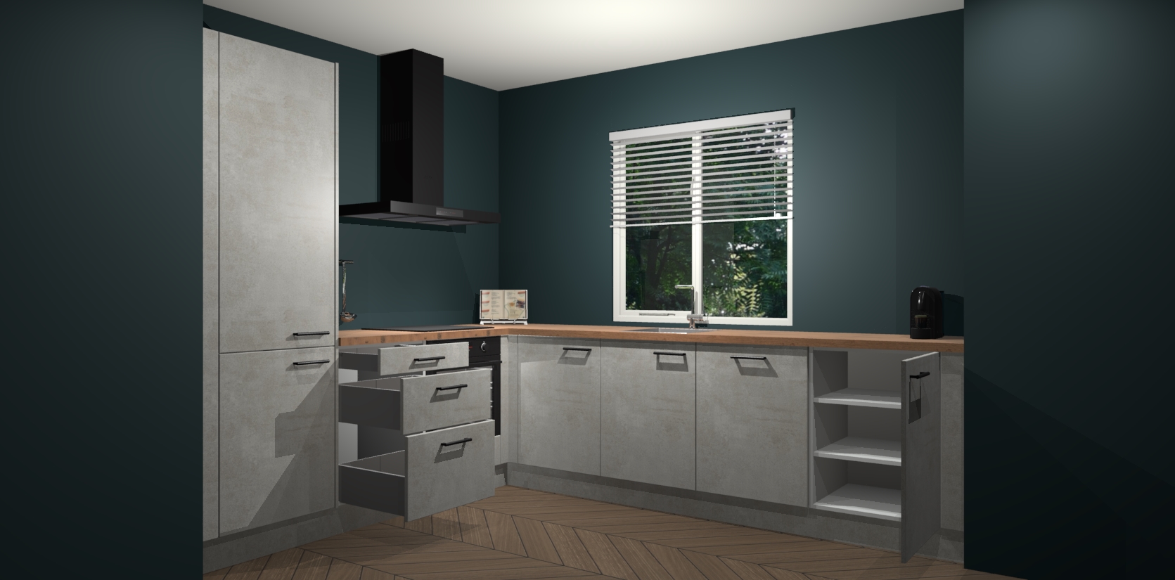 Onze Beton Opaal keuken Doha gaat niet alleen lang mee, maar biedt ook een onklopbare prijs. We garanderen dat we nooit een extravagant prijskaartje zullen hanteren omdat we geen compromissen sluiten op het vlak van kwaliteit - gewoon verfijnd Duits vakmanschap voor de juiste prijs. Profiteer nu en investeer in dit tijdloze meesterwerk voordat de voorraad op is!