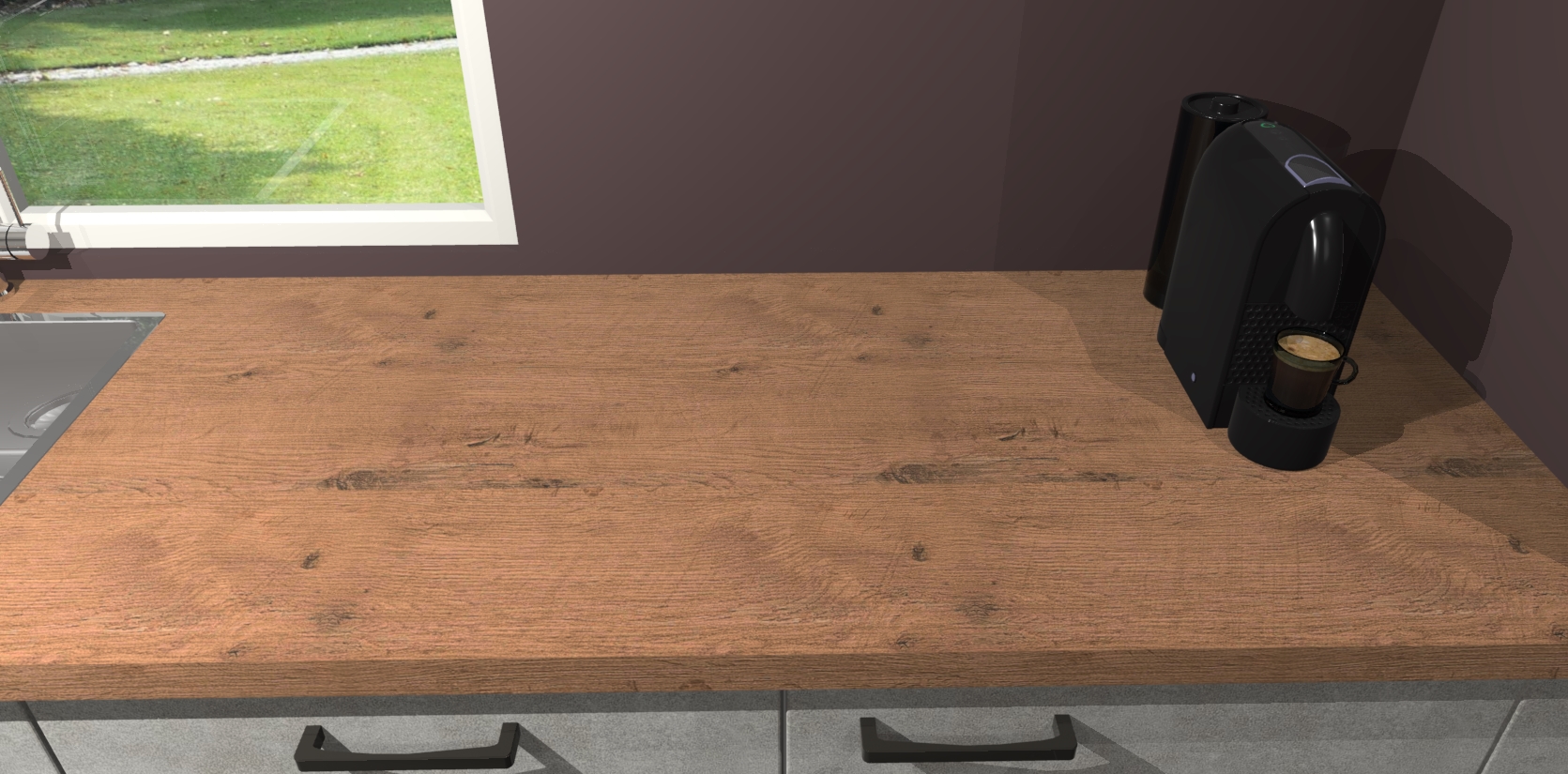 - Bij een hoekwerkblad zijn de hoeken in gevreesd en op maat gemaakt