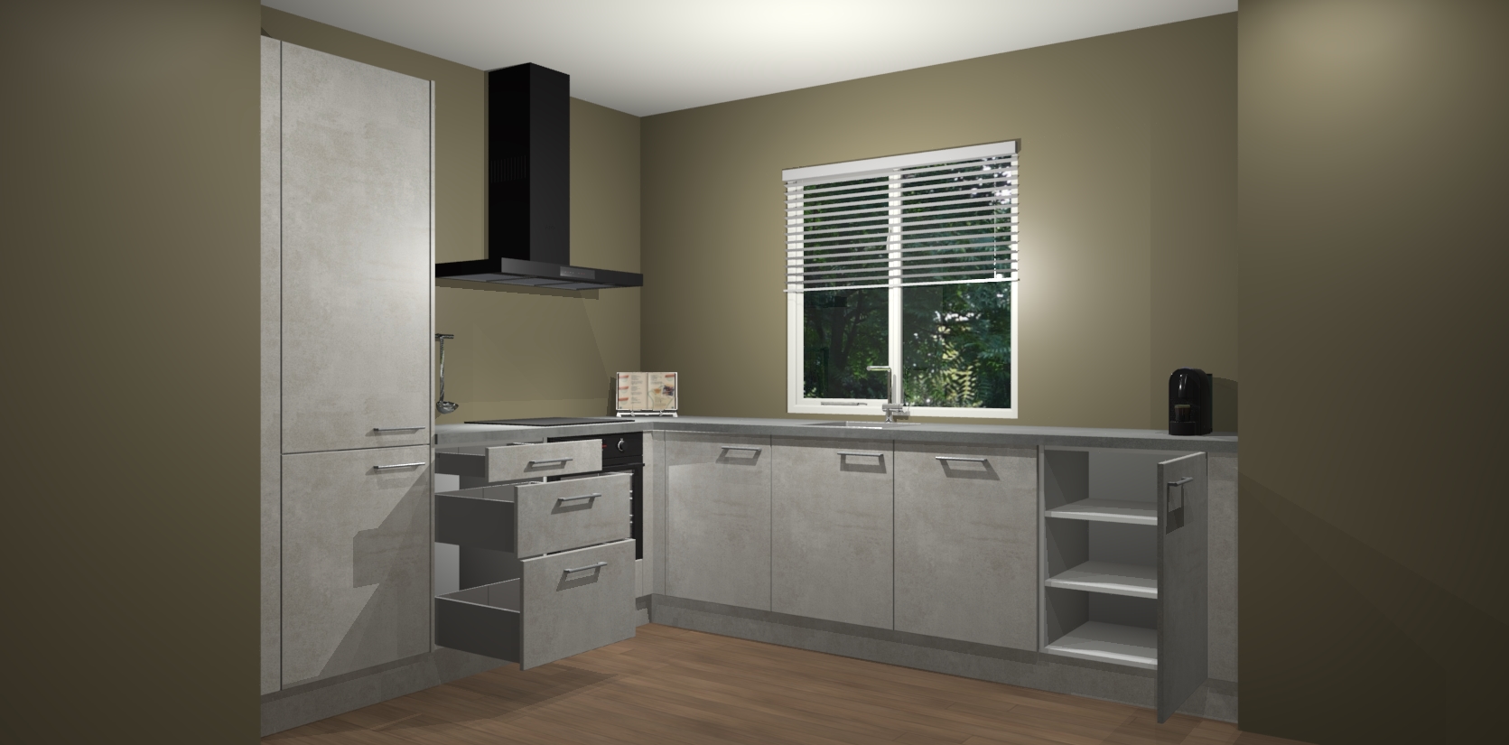 Maak kennis met de Beton Opaal keuken Doha - de perfecte aanvulling voor uw moderne keuken! Ervaar tijdloos design, elegantie en een chique uitstraling met onze zwarte handgrepen, soft-close deuren en veel opbergruimte. Dit alles wordt aangeboden tegen een vaste lage prijs voor ongeëvenaarde Duitse keukenkwaliteit!