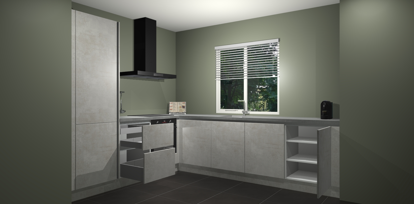 Maak kennis met de Beton Opaal keuken Doha - de perfecte aanvulling voor uw moderne keuken! Ervaar tijdloos design, elegantie en een chique uitstraling met onze zwarte handgrepen, soft-close deuren en veel opbergruimte. Dit alles wordt aangeboden tegen een vaste lage prijs voor ongeëvenaarde Duitse keukenkwaliteit!