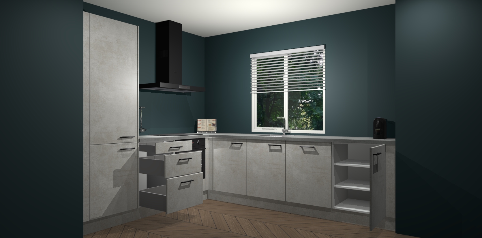 Maak kennis met de Beton Opaal keuken Doha - de perfecte aanvulling voor uw moderne keuken! Ervaar tijdloos design, elegantie en een chique uitstraling met onze zwarte handgrepen, soft-close deuren en veel opbergruimte. Dit alles wordt aangeboden tegen een vaste lage prijs voor ongeëvenaarde Duitse keukenkwaliteit!
