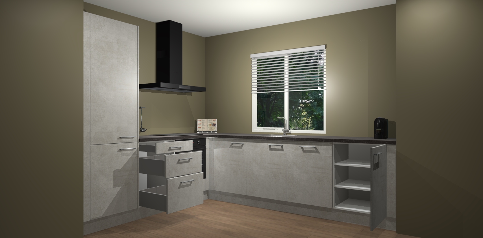 Maak kennis met de Beton Opaal keuken Doha - de perfecte aanvulling voor uw moderne keuken! Ervaar tijdloos design, elegantie en een chique uitstraling met onze zwarte handgrepen, soft-close deuren en veel opbergruimte. Dit alles wordt aangeboden tegen een vaste lage prijs voor ongeëvenaarde Duitse keukenkwaliteit!