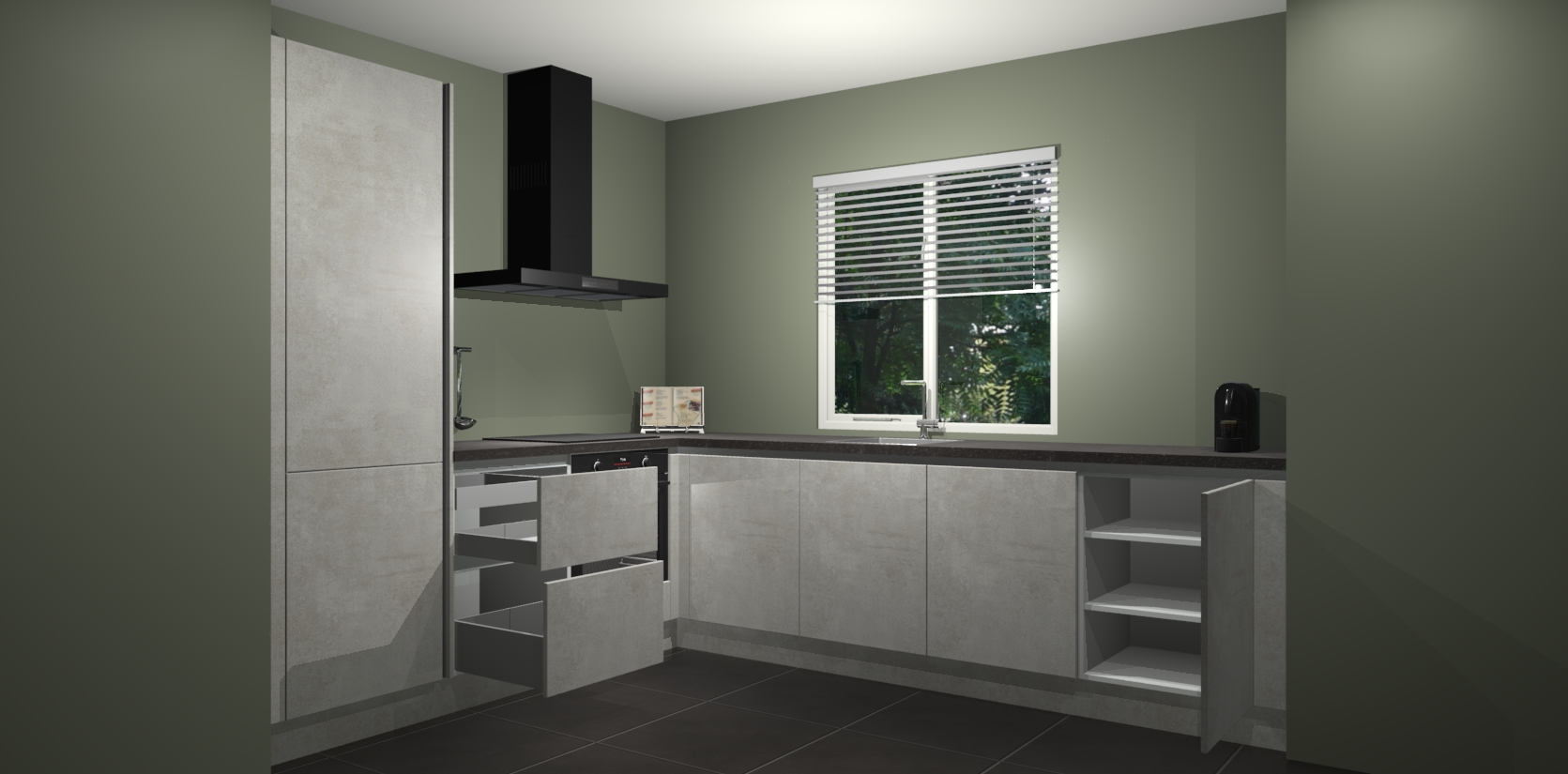 Maak kennis met de Beton Opaal keuken Doha - de perfecte aanvulling voor uw moderne keuken! Ervaar tijdloos design, elegantie en een chique uitstraling met onze zwarte handgrepen, soft-close deuren en veel opbergruimte. Dit alles wordt aangeboden tegen een vaste lage prijs voor ongeëvenaarde Duitse keukenkwaliteit!