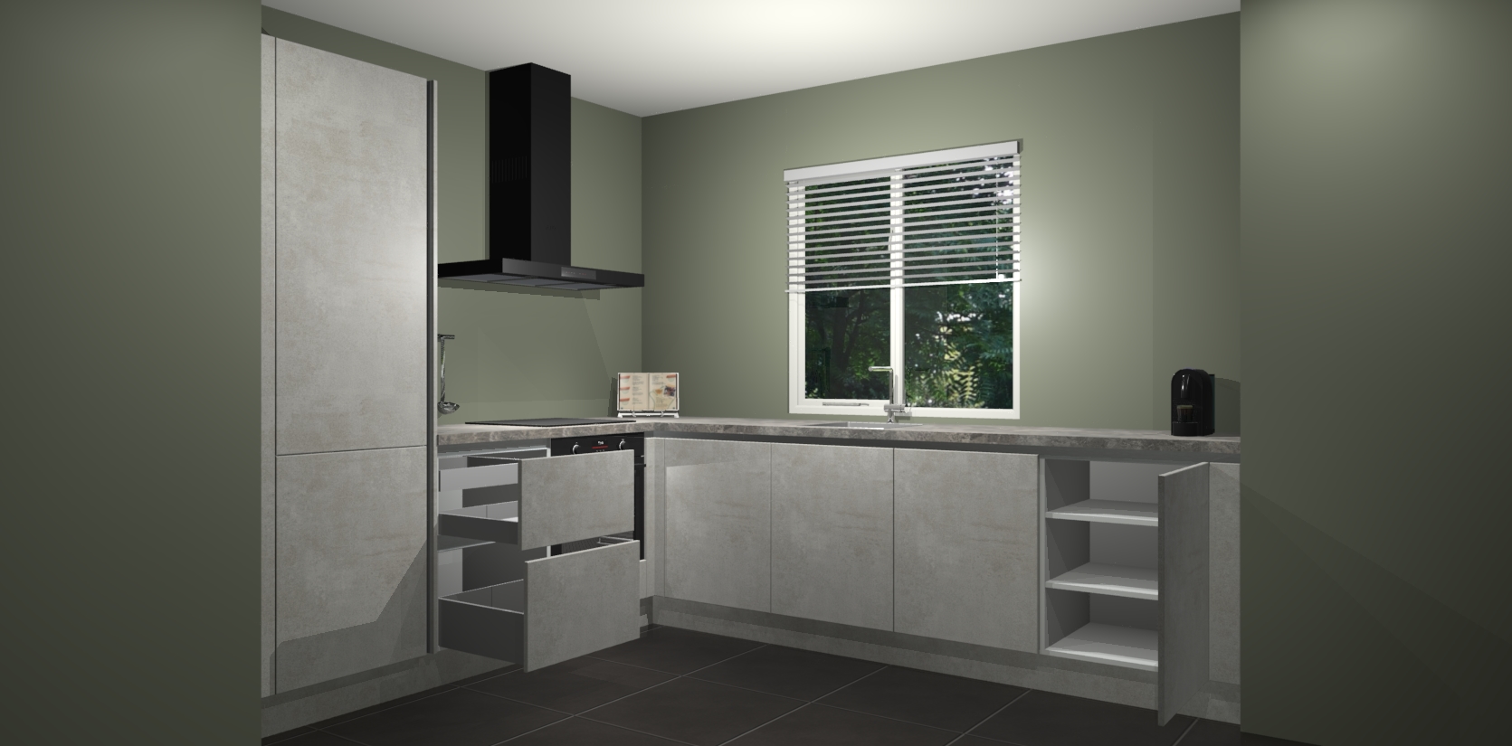 Maak kennis met de Beton Opaal keuken Doha - de perfecte aanvulling voor uw moderne keuken! Ervaar tijdloos design, elegantie en een chique uitstraling met onze zwarte handgrepen, soft-close deuren en veel opbergruimte. Dit alles wordt aangeboden tegen een vaste lage prijs voor ongeëvenaarde Duitse keukenkwaliteit!