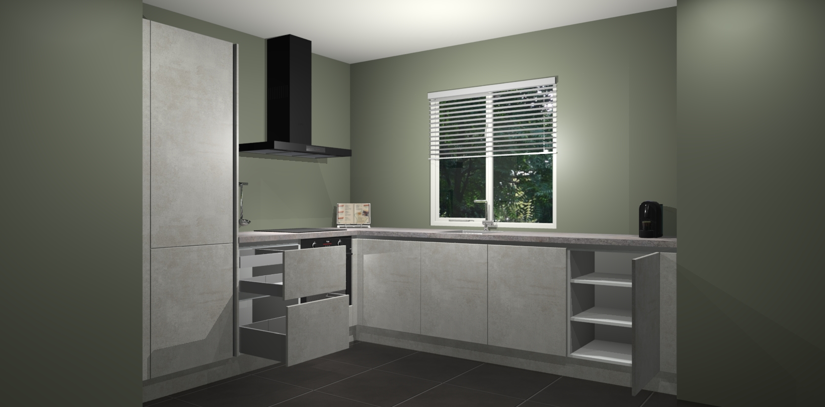 Maak kennis met de Beton Opaal keuken Doha - de perfecte aanvulling voor uw moderne keuken! Ervaar tijdloos design, elegantie en een chique uitstraling met onze zwarte handgrepen, soft-close deuren en veel opbergruimte. Dit alles wordt aangeboden tegen een vaste lage prijs voor ongeëvenaarde Duitse keukenkwaliteit!