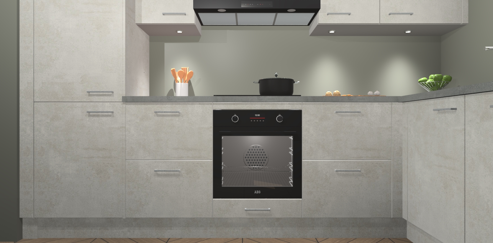De Beton Opaal keuken Geneve is uitgerust met 5 inbouwapparaten - een oven, inductiekookplaat, afzuigkap, vaatwasser en koelkast - voor al uw kook- en bewaarbehoeftes. U kunt deze apparaten desgewenst eenvoudig upgraden naar AEG of de oven omruilen voor een combimagnetron na het plaatsen van uw bestelling. En met de soft close deuren, voldoende opbergruimte en kasten die voorgemonteerd worden geleverd, bent u in een mum van tijd klaar om heerlijke maaltijden te bereiden!