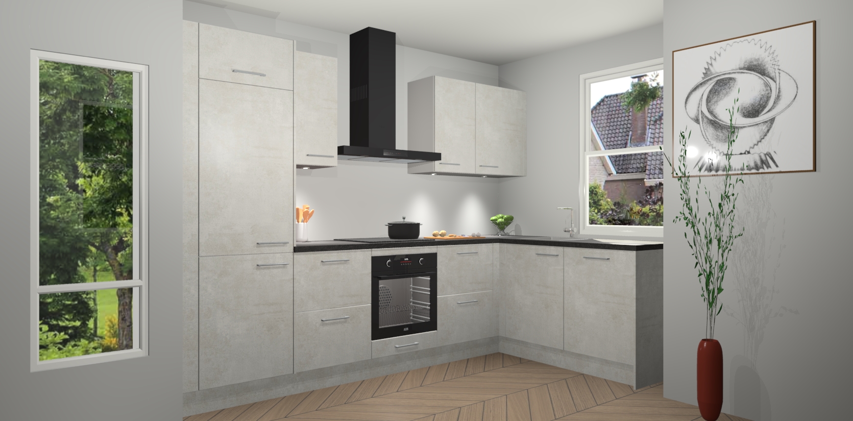 De Beton Opaal keuken Geneve is precies wat u nodig heeft als u op zoek bent naar modern design, versmolten met tijdloze schoonheid. De strakke afwerking voegt klasse toe terwijl het toch een uitnodigende sfeer behoudt; zeker om zowel gasten als uzelf te inspireren om in stijl te gaan koken! En nog beter, het zal uw budget niet breken - dus waarom wachten? Met de Beton Opaal keuken Geneve bent u verzekerd van kwaliteit zonder in te leveren op de prijs!