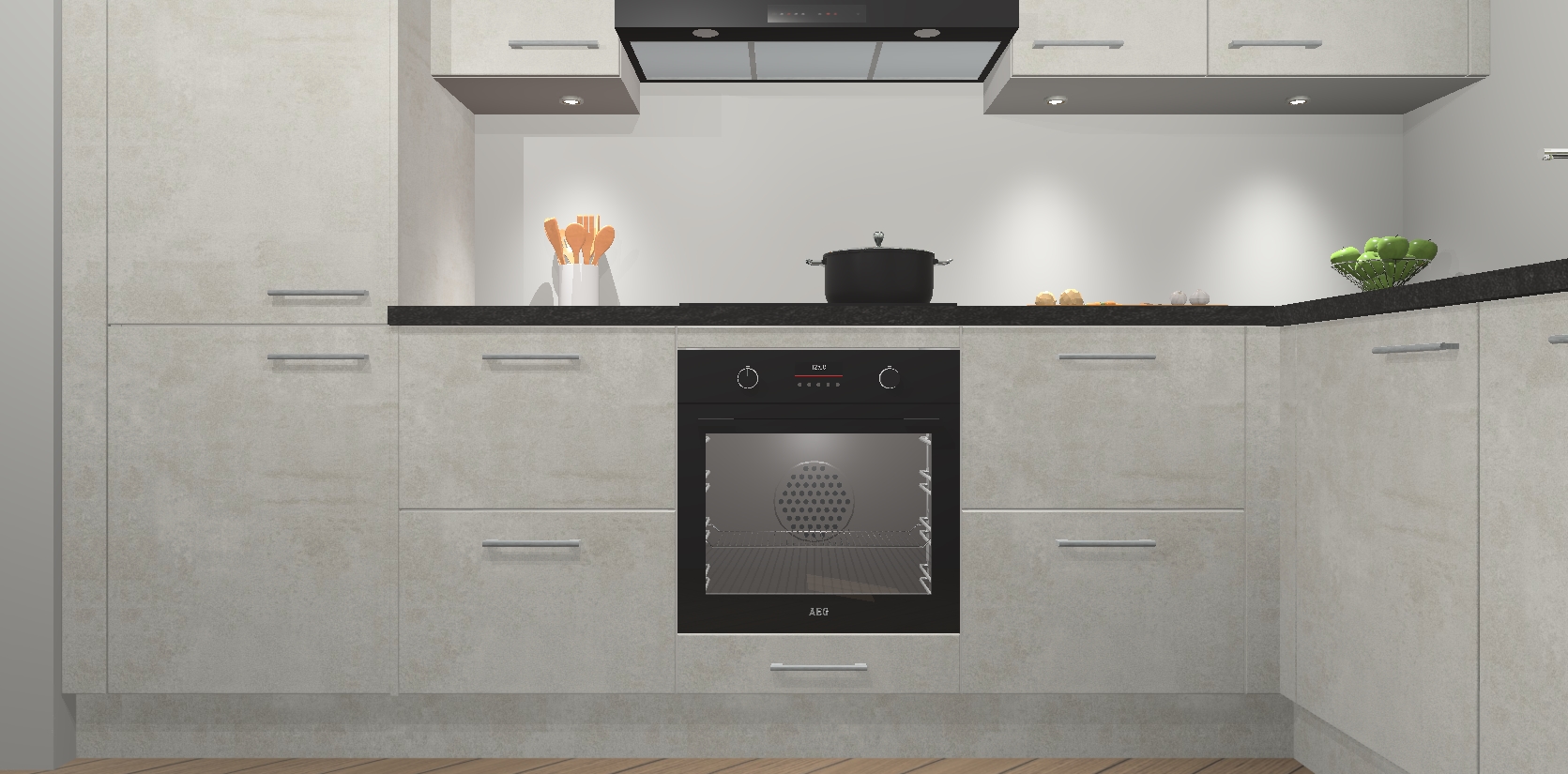 De Beton Opaal keuken Geneve is uitgerust met 5 inbouwapparaten - een oven, inductiekookplaat, afzuigkap, vaatwasser en koelkast - voor al uw kook- en bewaarbehoeftes. U kunt deze apparaten desgewenst eenvoudig upgraden naar AEG of de oven omruilen voor een combimagnetron na het plaatsen van uw bestelling. En met de soft close deuren, voldoende opbergruimte en kasten die voorgemonteerd worden geleverd, bent u in een mum van tijd klaar om heerlijke maaltijden te bereiden!