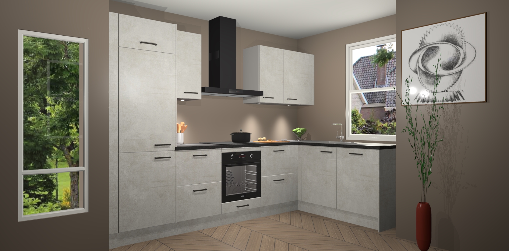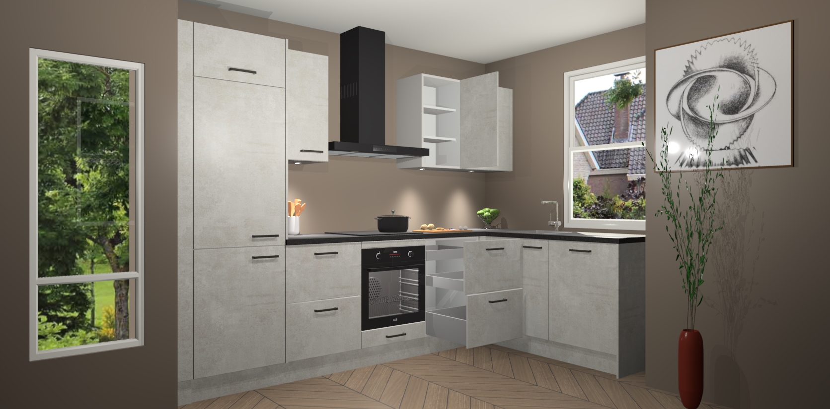De Beton Opaal keuken Geneve is precies wat u nodig heeft als u op zoek bent naar modern design, versmolten met tijdloze schoonheid. De strakke afwerking voegt klasse toe terwijl het toch een uitnodigende sfeer behoudt; zeker om zowel gasten als uzelf te inspireren om in stijl te gaan koken! En nog beter, het zal uw budget niet breken - dus waarom wachten? Met de Beton Opaal keuken Geneve bent u verzekerd van kwaliteit zonder in te leveren op de prijs!