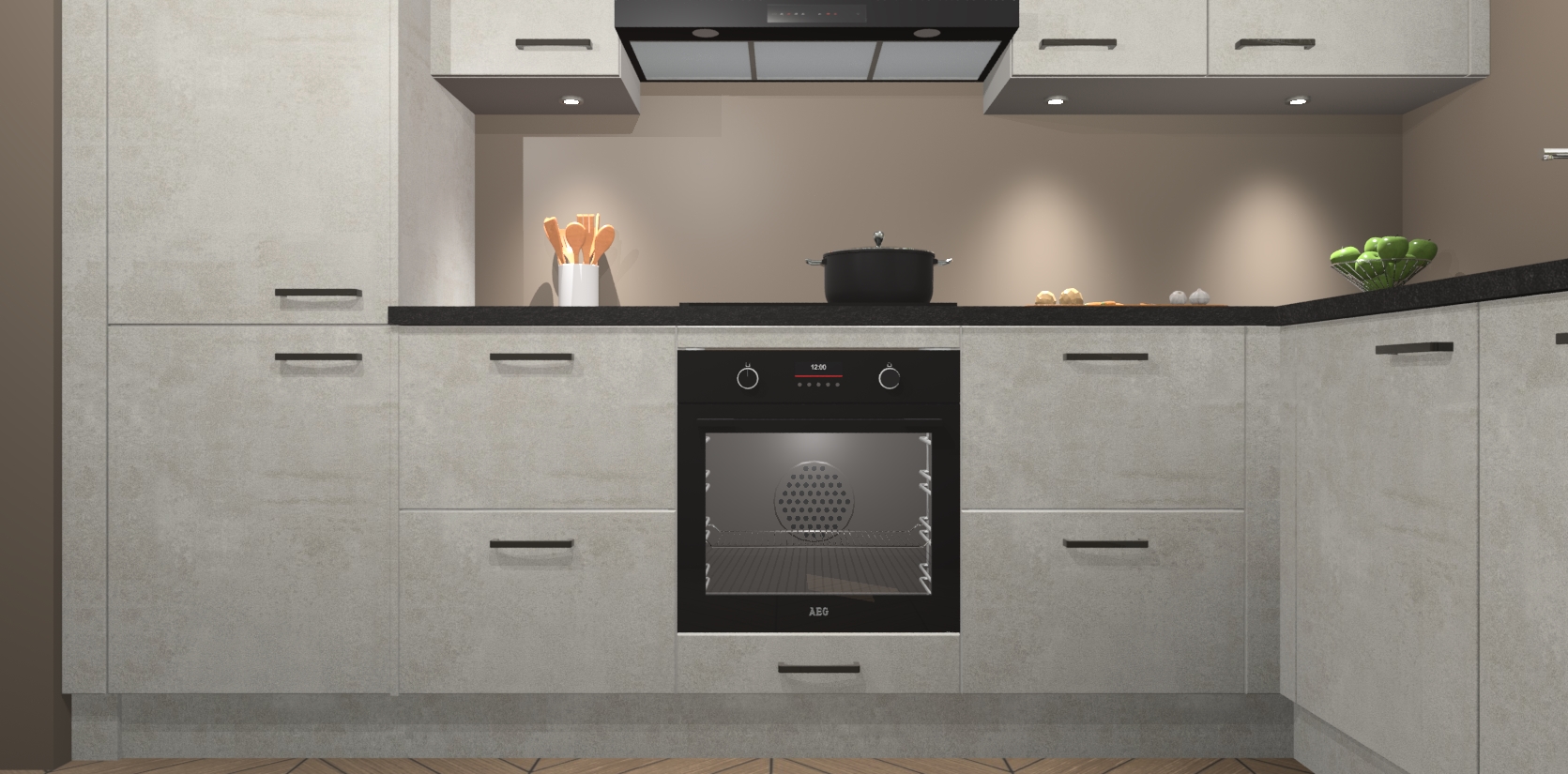 De Beton Opaal keuken Geneve is uitgerust met 5 inbouwapparaten - een oven, inductiekookplaat, afzuigkap, vaatwasser en koelkast - voor al uw kook- en bewaarbehoeftes. U kunt deze apparaten desgewenst eenvoudig upgraden naar AEG of de oven omruilen voor een combimagnetron na het plaatsen van uw bestelling. En met de soft close deuren, voldoende opbergruimte en kasten die voorgemonteerd worden geleverd, bent u in een mum van tijd klaar om heerlijke maaltijden te bereiden!