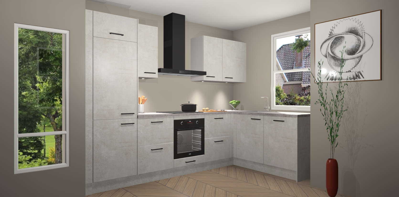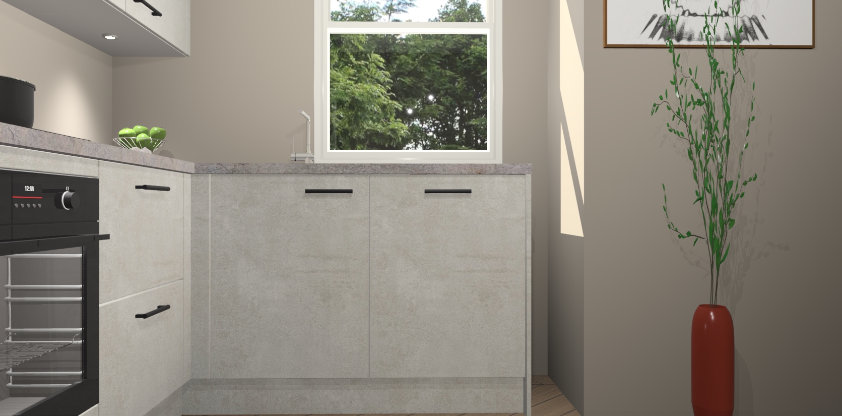 De Beton Opaal keuken Geneve is precies wat u nodig heeft als u op zoek bent naar modern design, versmolten met tijdloze schoonheid. De strakke afwerking voegt klasse toe terwijl het toch een uitnodigende sfeer behoudt; zeker om zowel gasten als uzelf te inspireren om in stijl te gaan koken! En nog beter, het zal uw budget niet breken - dus waarom wachten? Met de Beton Opaal keuken Geneve bent u verzekerd van kwaliteit zonder in te leveren op de prijs!