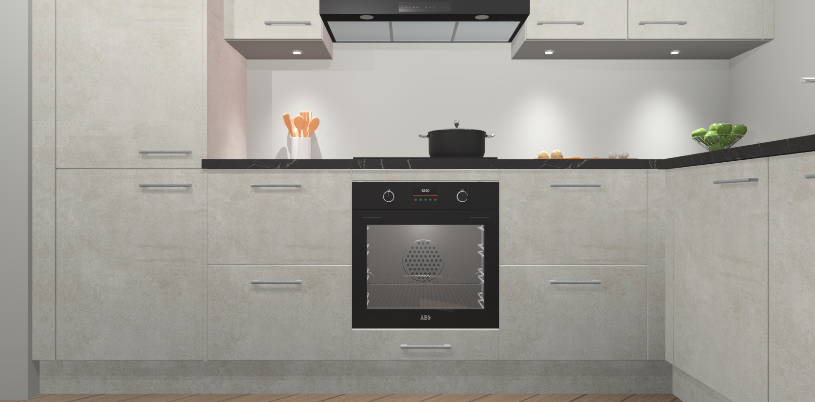 De Beton Opaal keuken Geneve is uitgerust met 5 inbouwapparaten - een oven, inductiekookplaat, afzuigkap, vaatwasser en koelkast - voor al uw kook- en bewaarbehoeftes. U kunt deze apparaten desgewenst eenvoudig upgraden naar AEG of de oven omruilen voor een combimagnetron na het plaatsen van uw bestelling. En met de soft close deuren, voldoende opbergruimte en kasten die voorgemonteerd worden geleverd, bent u in een mum van tijd klaar om heerlijke maaltijden te bereiden!
