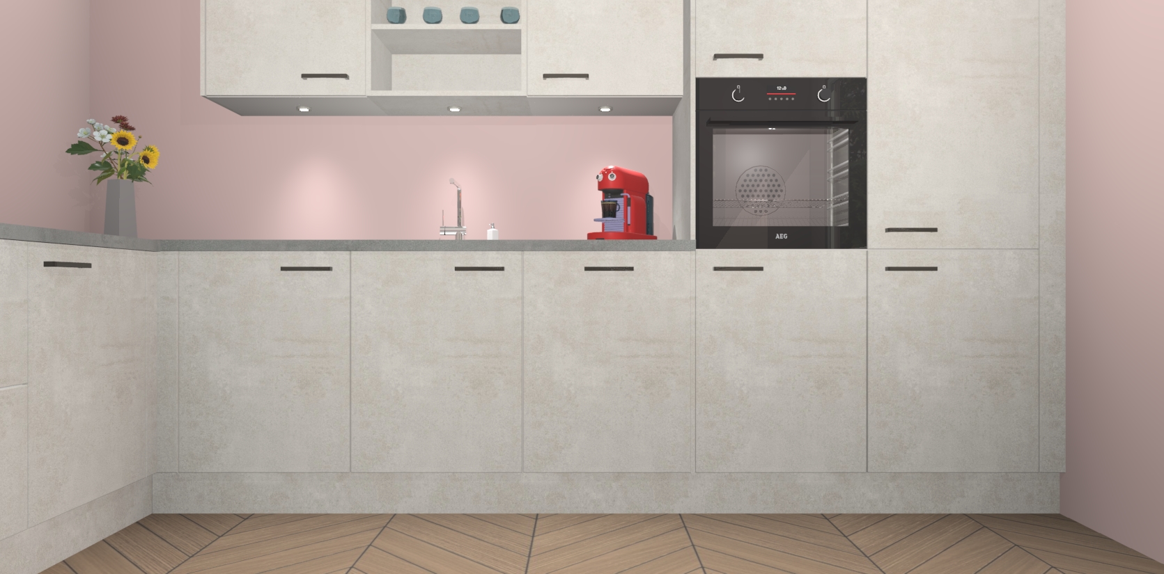 Inclusief plinten, stelpoten en werkblad