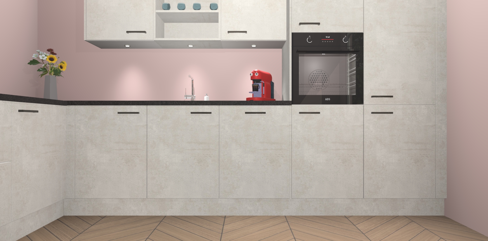 Inclusief plinten, stelpoten en werkblad