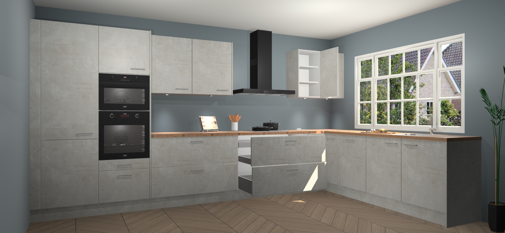 Inclusief plinten, stelpoten en werkblad