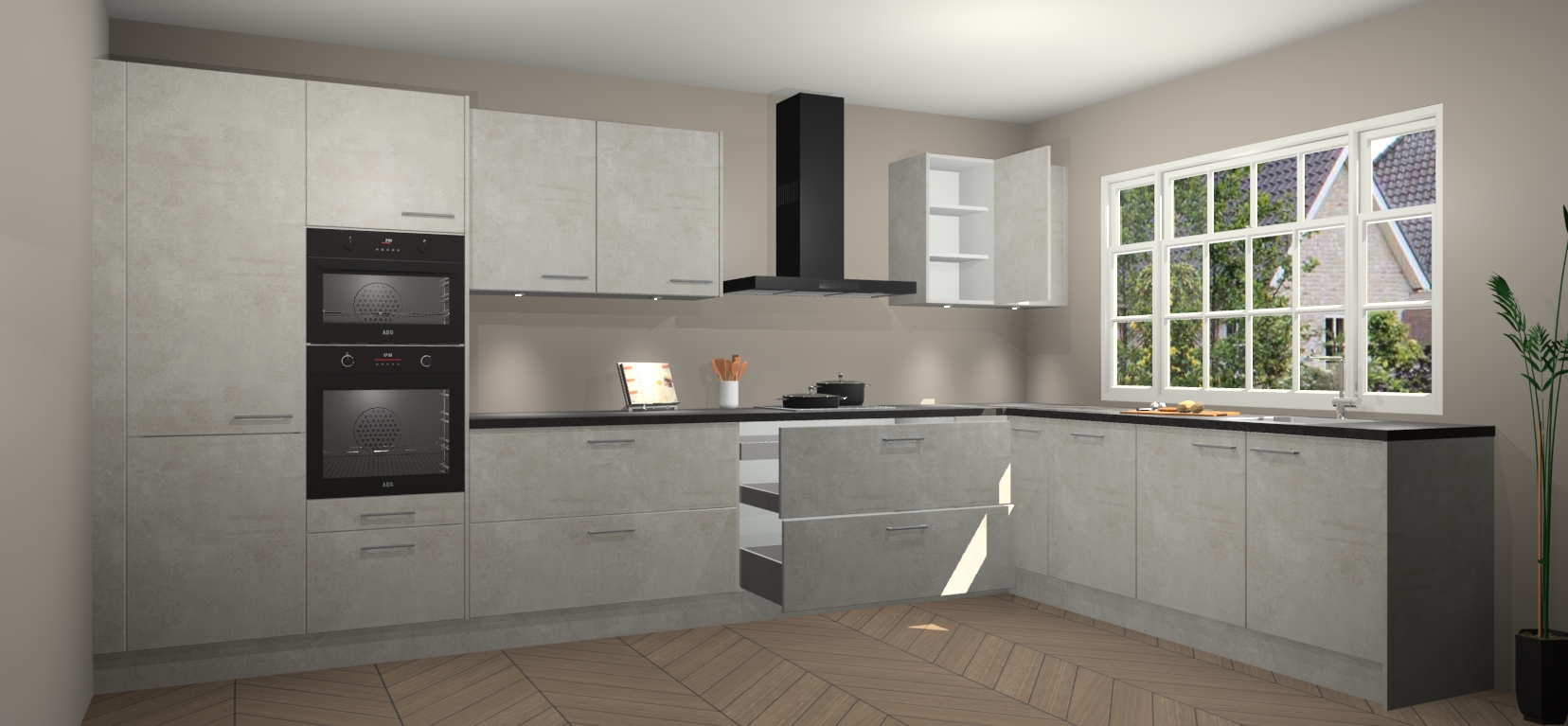 Kom dichtbij de perfecte keuken van uw dromen met de beton opaal keuken Graz. Met een prachtige houtlook en eigentijds ontwerp, straalt deze keuken warmte en sfeer uit. Of u nu liefhebber bent van traditionele of moderne stijlen, er is genoeg ruimte om aan al uw behoeften te voldoen.