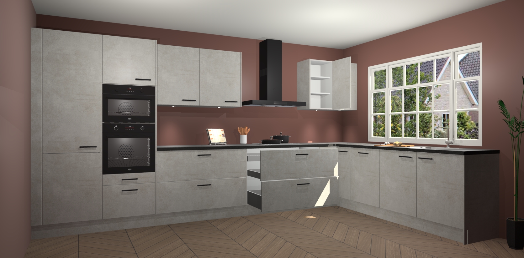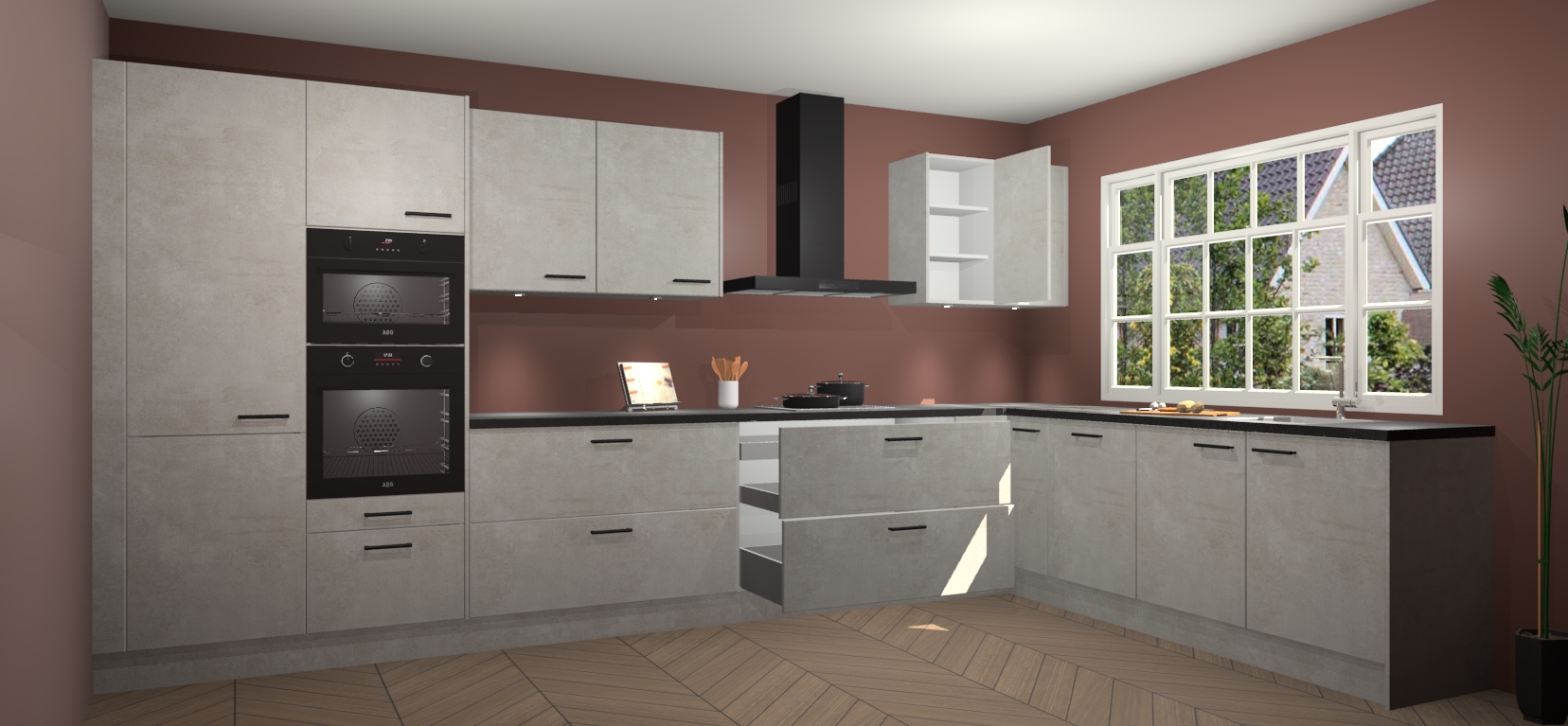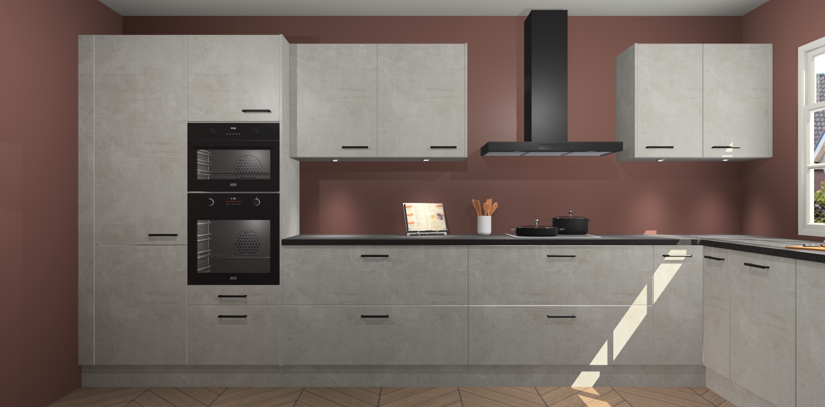 Kom dichtbij de perfecte keuken van uw dromen met de beton opaal keuken Graz. Met een prachtige houtlook en eigentijds ontwerp, straalt deze keuken warmte en sfeer uit. Of u nu liefhebber bent van traditionele of moderne stijlen, er is genoeg ruimte om aan al uw behoeften te voldoen.