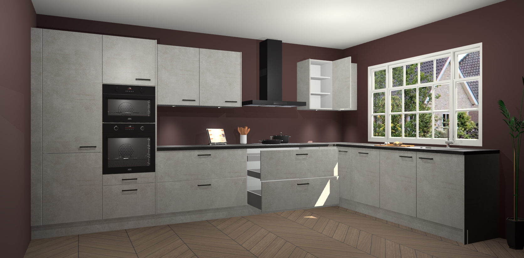 Kom dichtbij de perfecte keuken van uw dromen met de beton opaal keuken Graz. Met een prachtige houtlook en eigentijds ontwerp, straalt deze keuken warmte en sfeer uit. Of u nu liefhebber bent van traditionele of moderne stijlen, er is genoeg ruimte om aan al uw behoeften te voldoen.