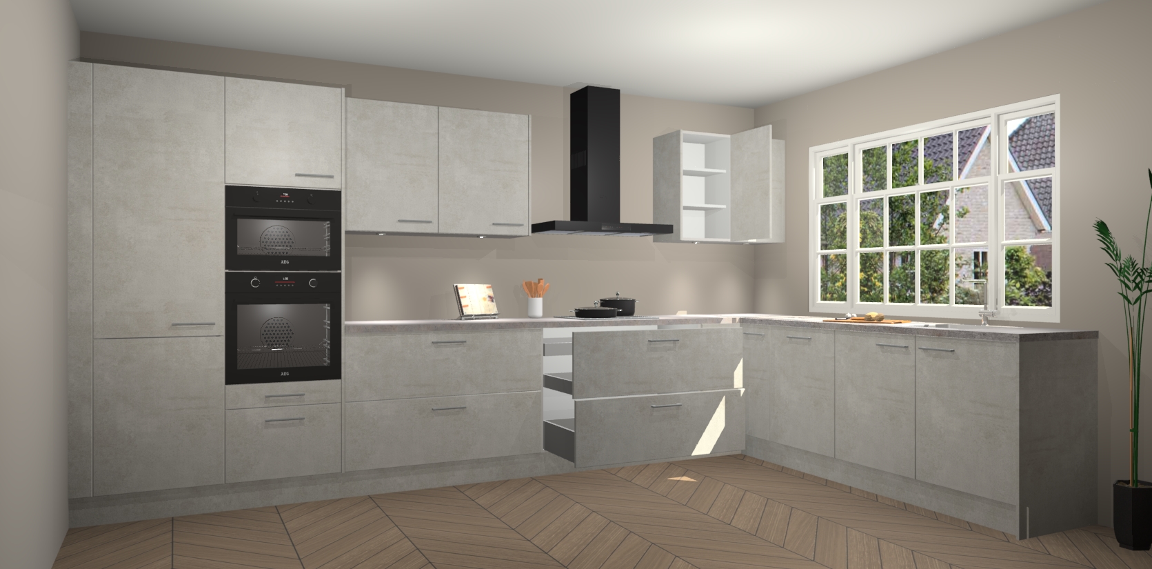 Kom dichtbij de perfecte keuken van uw dromen met de beton opaal keuken Graz. Met een prachtige houtlook en eigentijds ontwerp, straalt deze keuken warmte en sfeer uit. Of u nu liefhebber bent van traditionele of moderne stijlen, er is genoeg ruimte om aan al uw behoeften te voldoen.