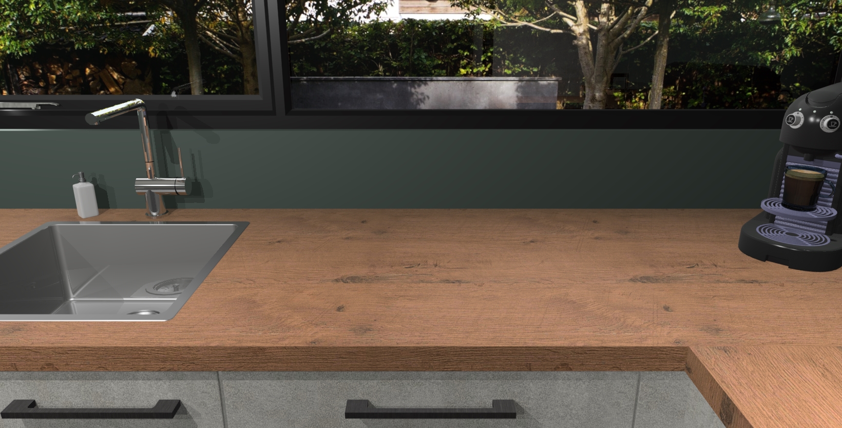 - Bij een hoekwerkblad zijn de hoeken in gevreesd en op maat gemaakt