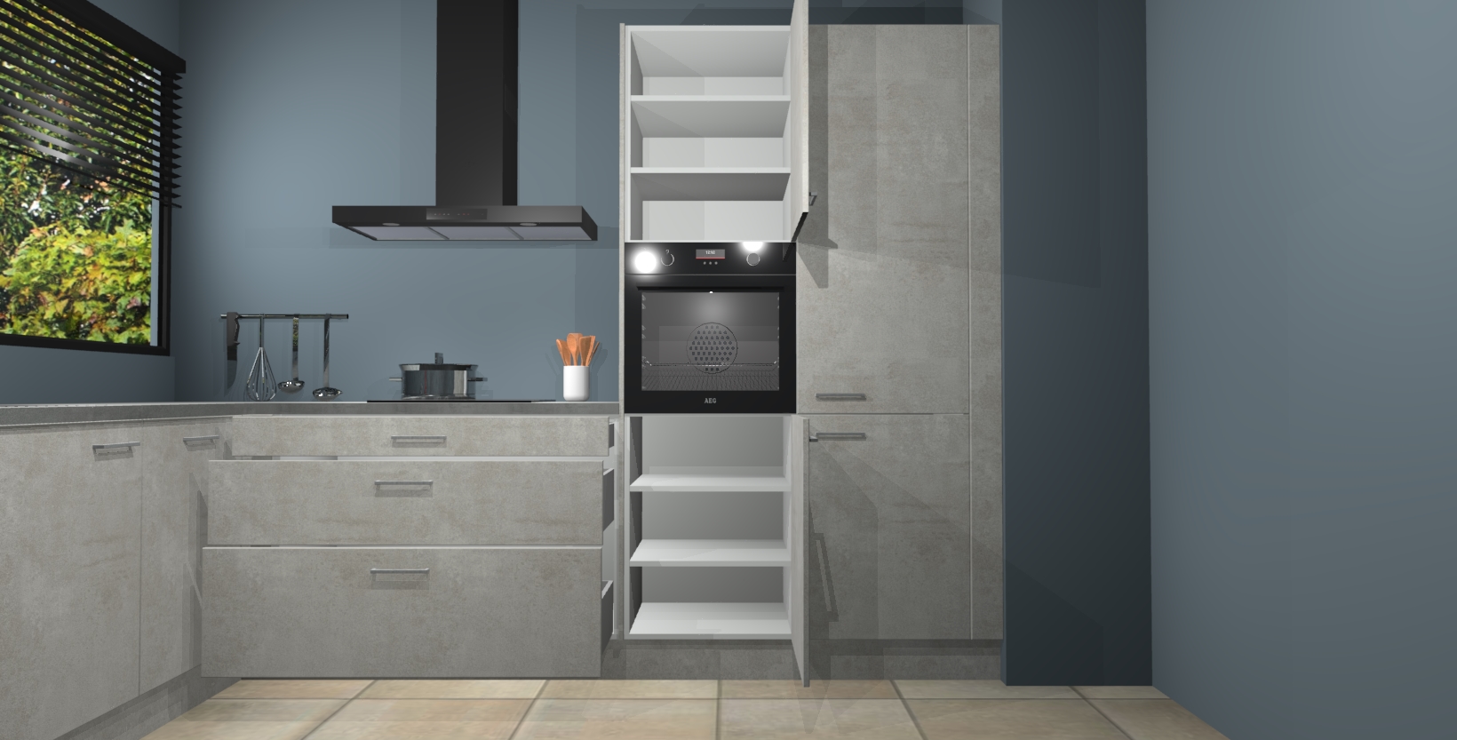 Met een modern, tijdloos design en ruime opslagruimte, zult u zich in no-time thuis voelen in uw nieuwe keuken. Uw leven wordt eenvoudiger met de soft-close deuren die voor het ultieme stille comfort zorgen - geen geluid dat u stoort terwijl u kookt. Ook is de keuken voorzien van 5 ingebouwde apparaten: een oven, inductie kookplaat, afzuigkap, vaatwasser en koelkast. Deze kunnen gemakkelijk na bestelling worden bijgewerkt naar AEG - waardoor uw luxe ervaring compleet is.