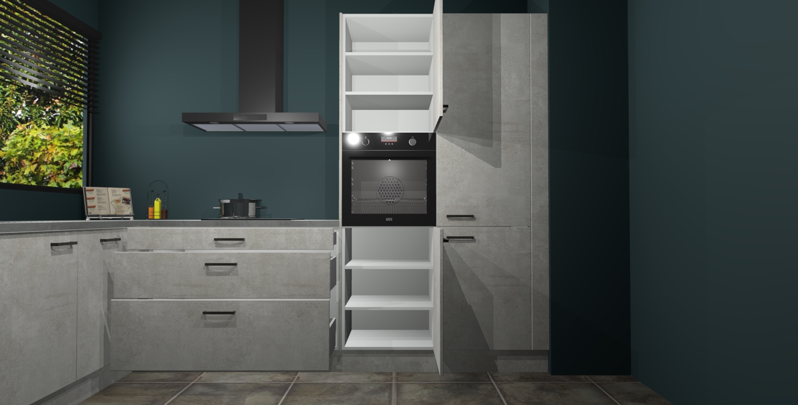 Met een modern, tijdloos design en ruime opslagruimte, zult u zich in no-time thuis voelen in uw nieuwe keuken. Uw leven wordt eenvoudiger met de soft-close deuren die voor het ultieme stille comfort zorgen - geen geluid dat u stoort terwijl u kookt. Ook is de keuken voorzien van 5 ingebouwde apparaten: een oven, inductie kookplaat, afzuigkap, vaatwasser en koelkast. Deze kunnen gemakkelijk na bestelling worden bijgewerkt naar AEG - waardoor uw luxe ervaring compleet is.