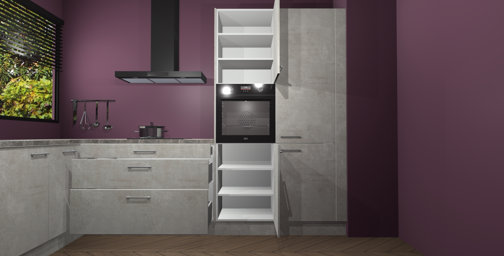 Met een modern, tijdloos design en ruime opslagruimte, zult u zich in no-time thuis voelen in uw nieuwe keuken. Uw leven wordt eenvoudiger met de soft-close deuren die voor het ultieme stille comfort zorgen - geen geluid dat u stoort terwijl u kookt. Ook is de keuken voorzien van 5 ingebouwde apparaten: een oven, inductie kookplaat, afzuigkap, vaatwasser en koelkast. Deze kunnen gemakkelijk na bestelling worden bijgewerkt naar AEG - waardoor uw luxe ervaring compleet is.