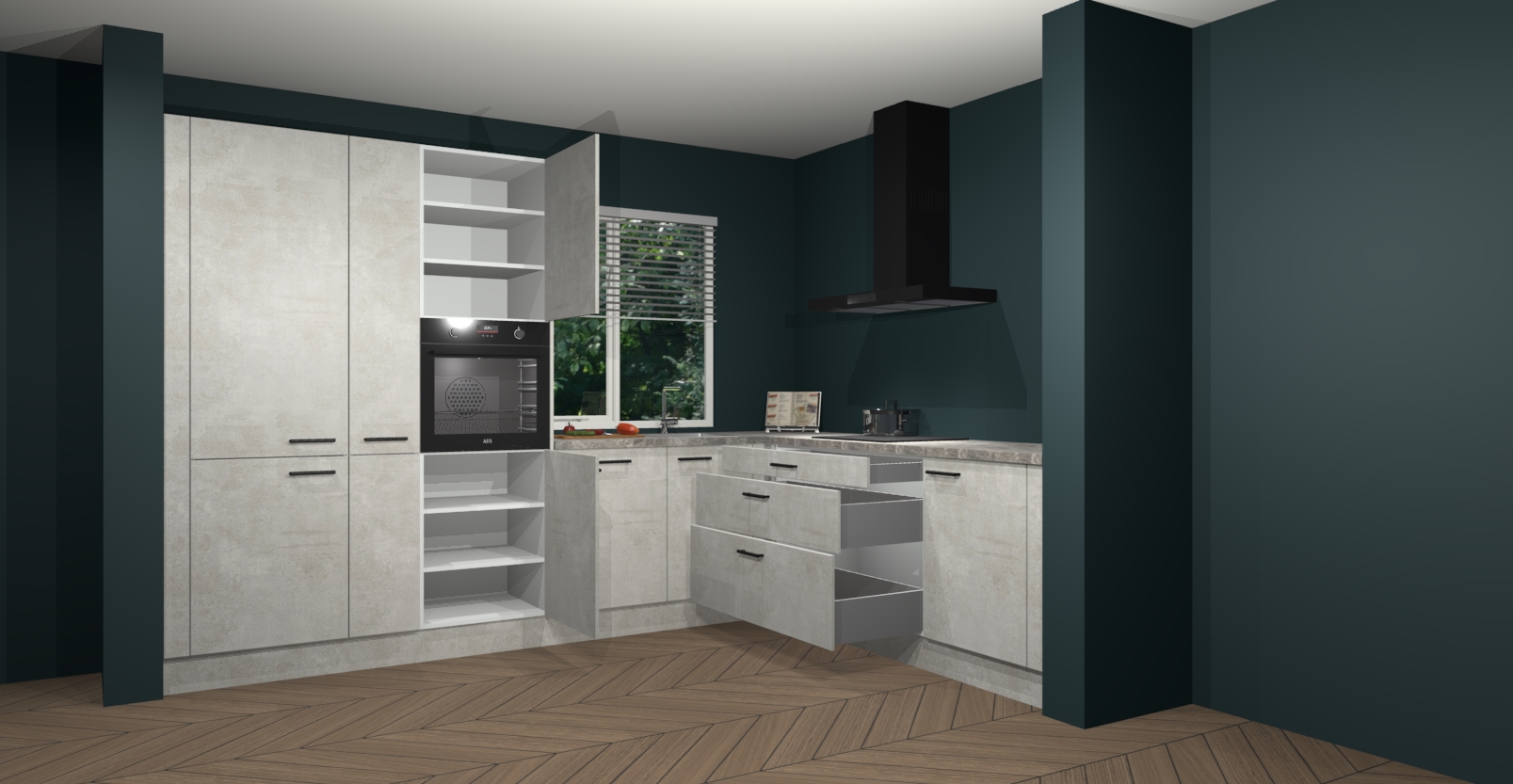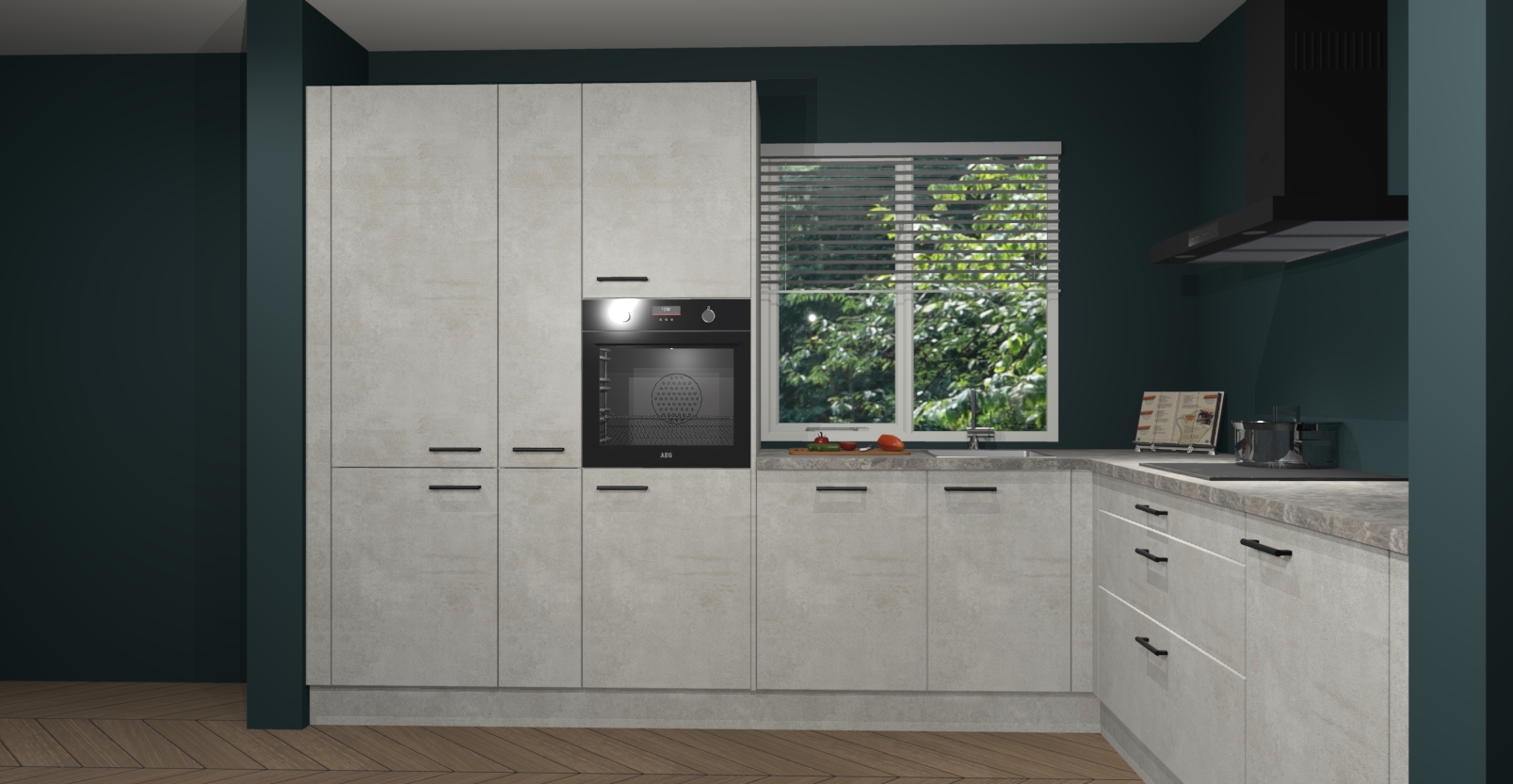 Met een modern, tijdloos design en ruime opslagruimte, zult u zich in no-time thuis voelen in uw nieuwe keuken. Uw leven wordt eenvoudiger met de soft-close deuren die voor het ultieme stille comfort zorgen - geen geluid dat u stoort terwijl u kookt. Ook is de keuken voorzien van 5 ingebouwde apparaten: een oven, inductie kookplaat, afzuigkap, vaatwasser en koelkast. Deze kunnen gemakkelijk na bestelling worden bijgewerkt naar AEG - waardoor uw luxe ervaring compleet is.