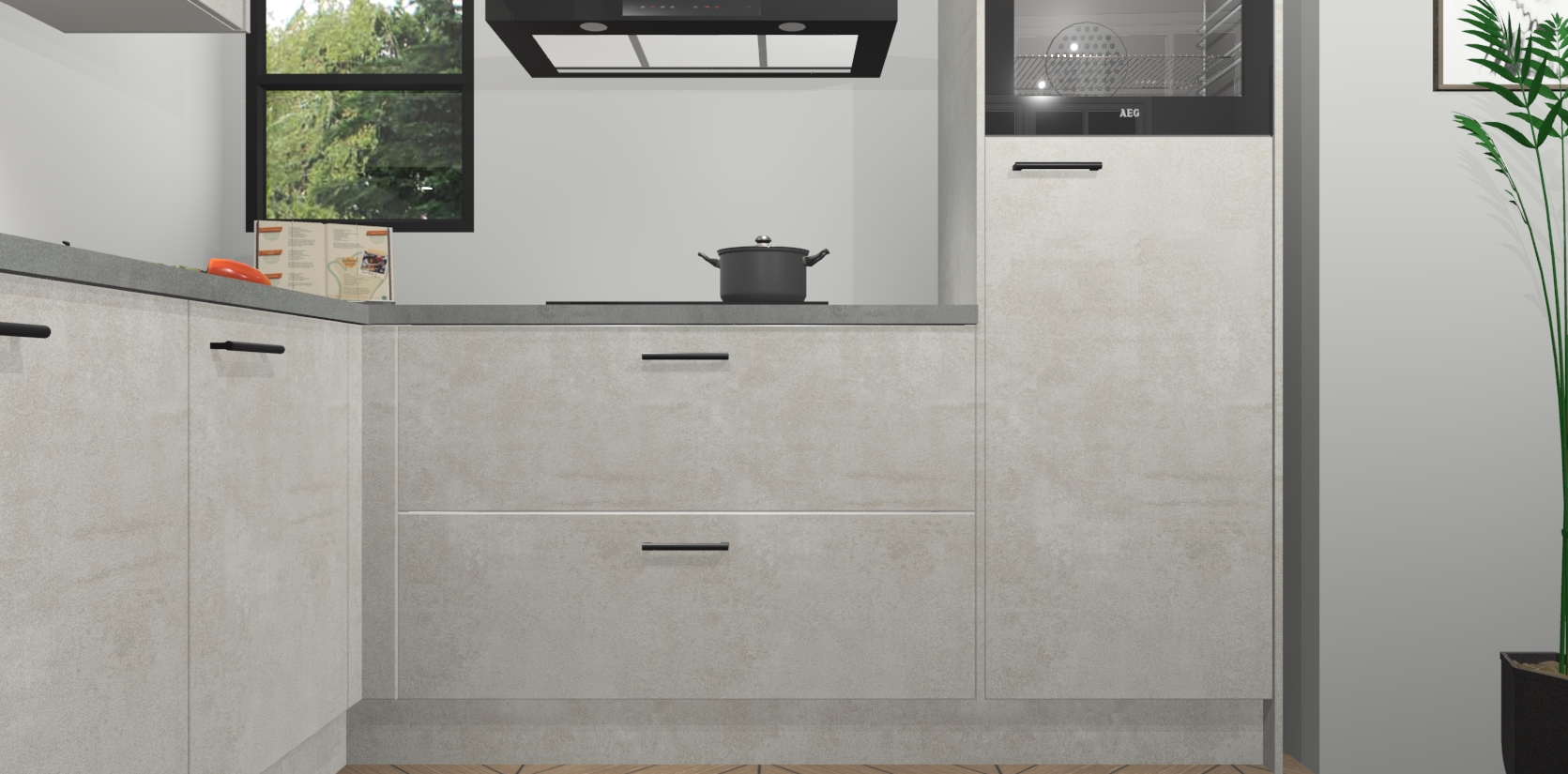 Inclusief plinten, stelpoten en werkblad