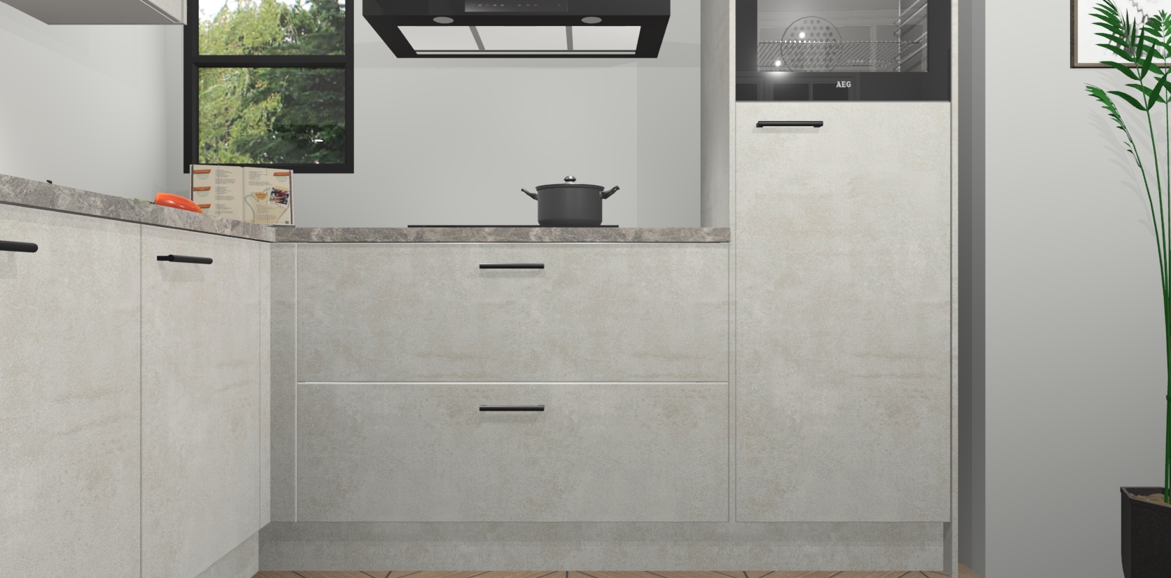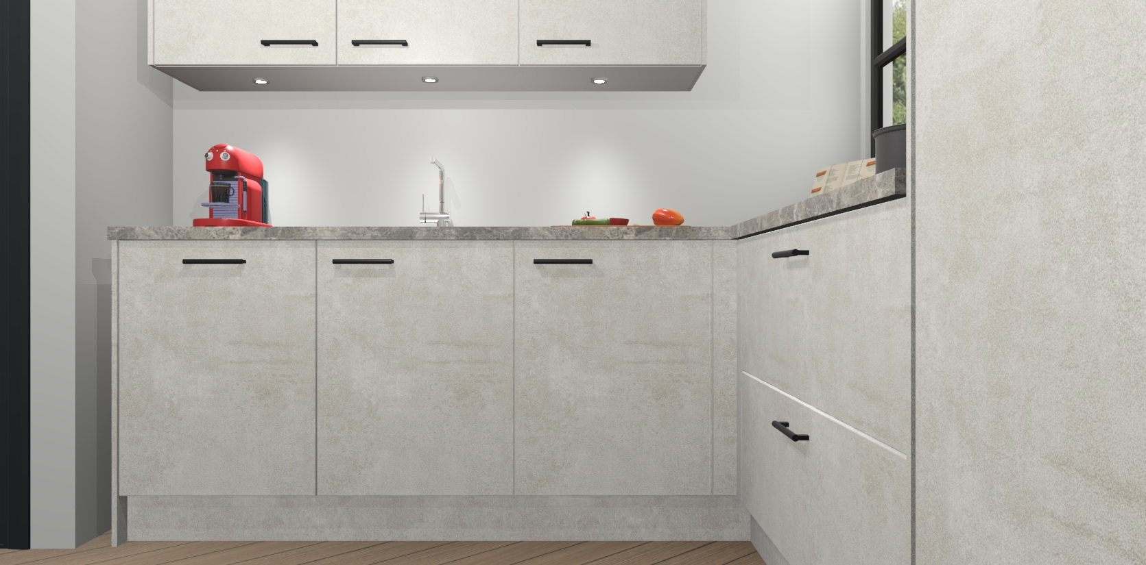 Inclusief plinten, stelpoten en werkblad